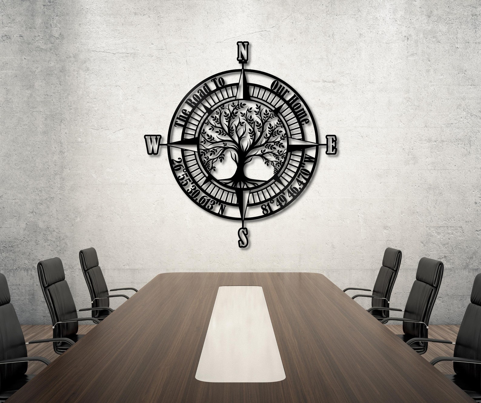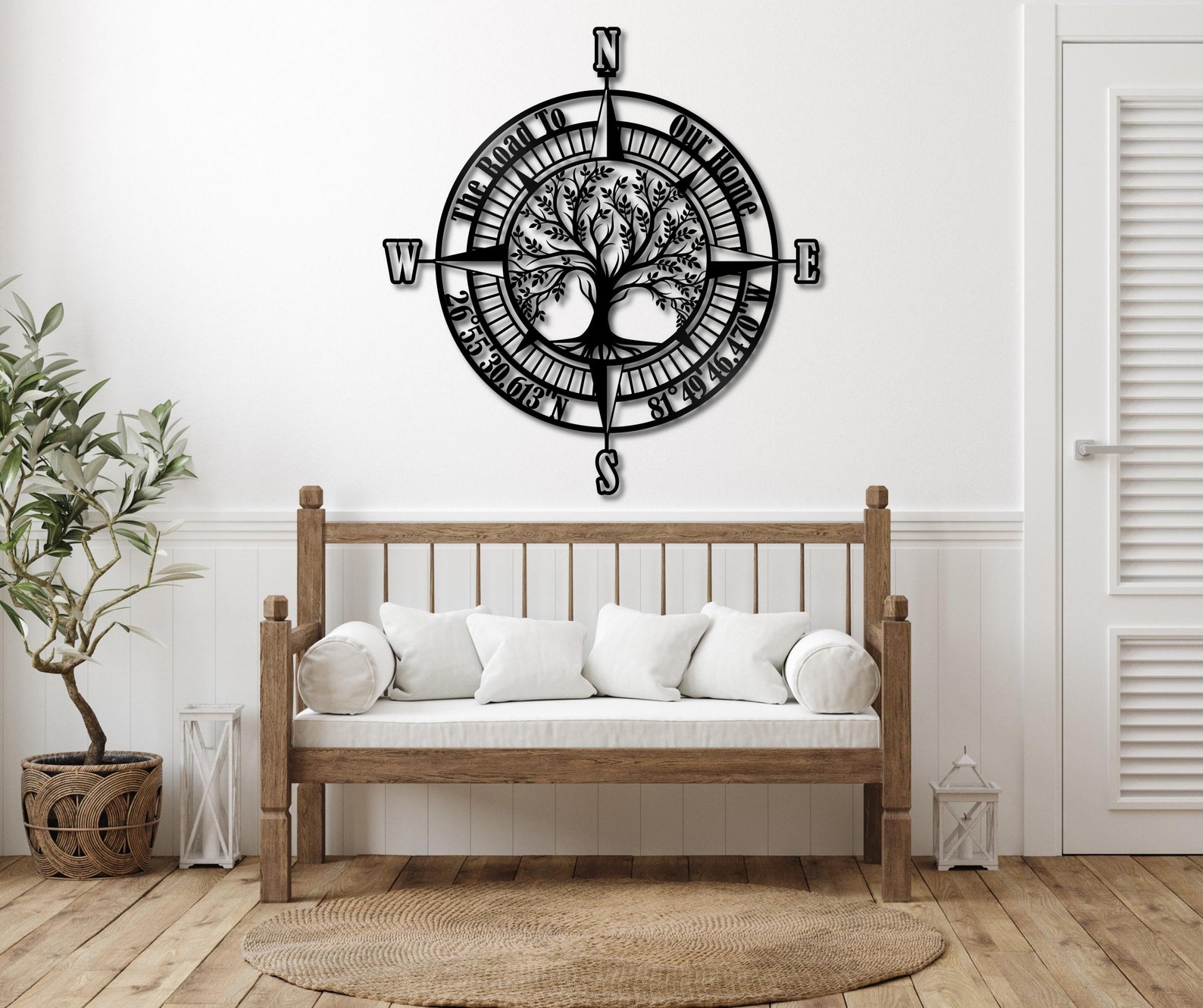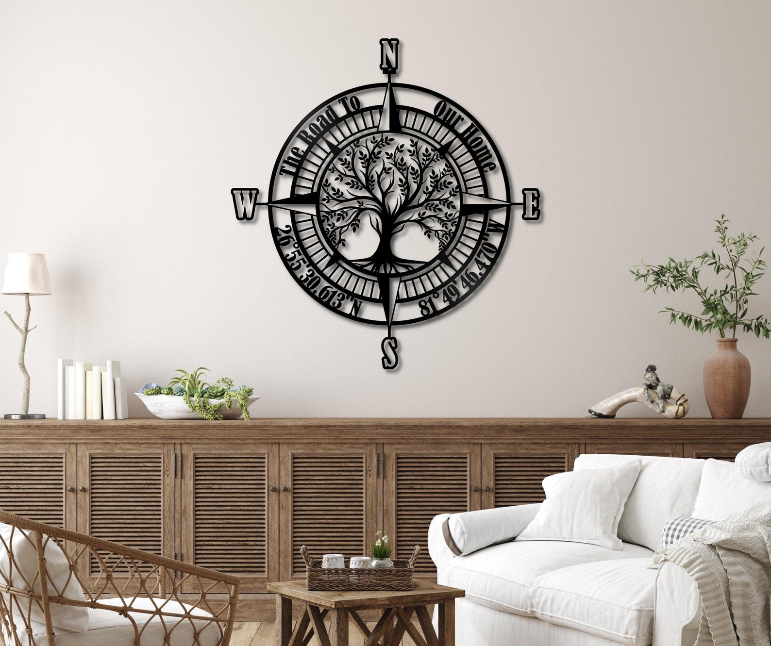 Personalized Compass Metal Wall Decor . Life Tree Themed.