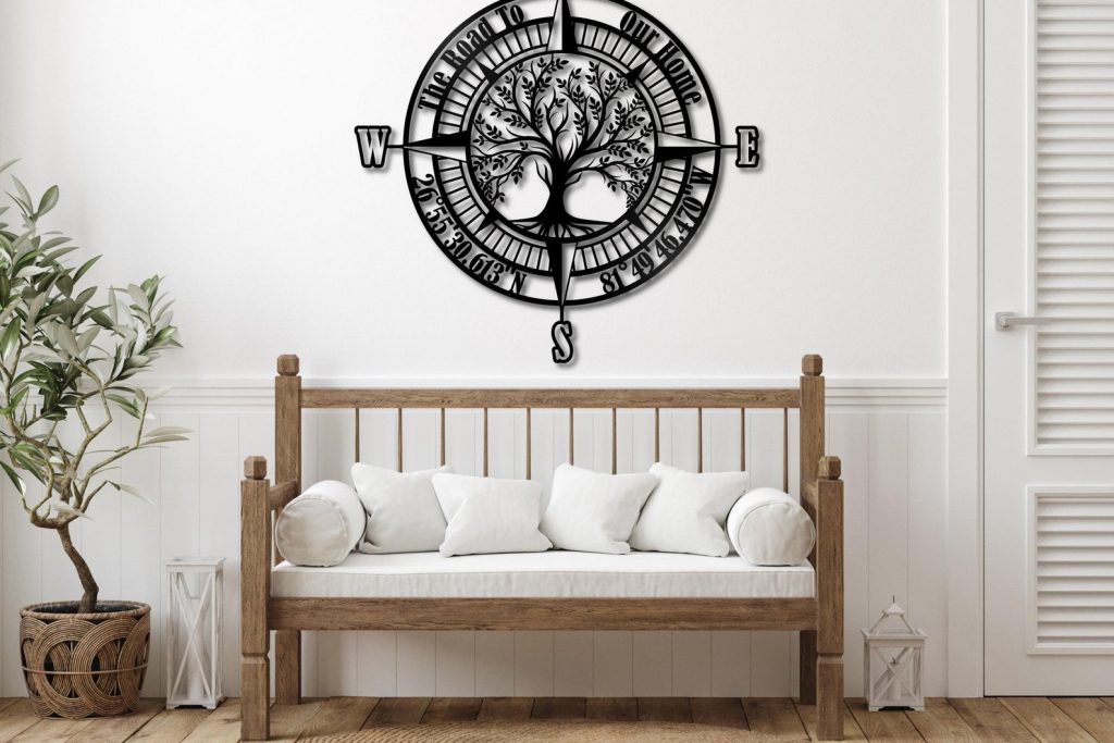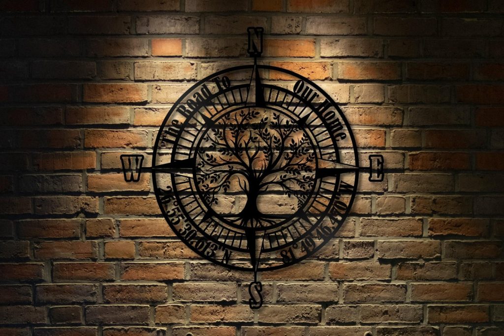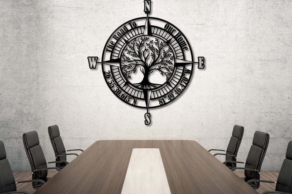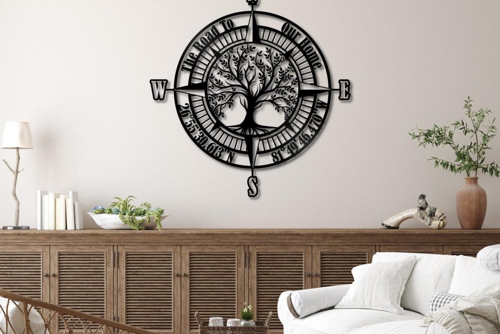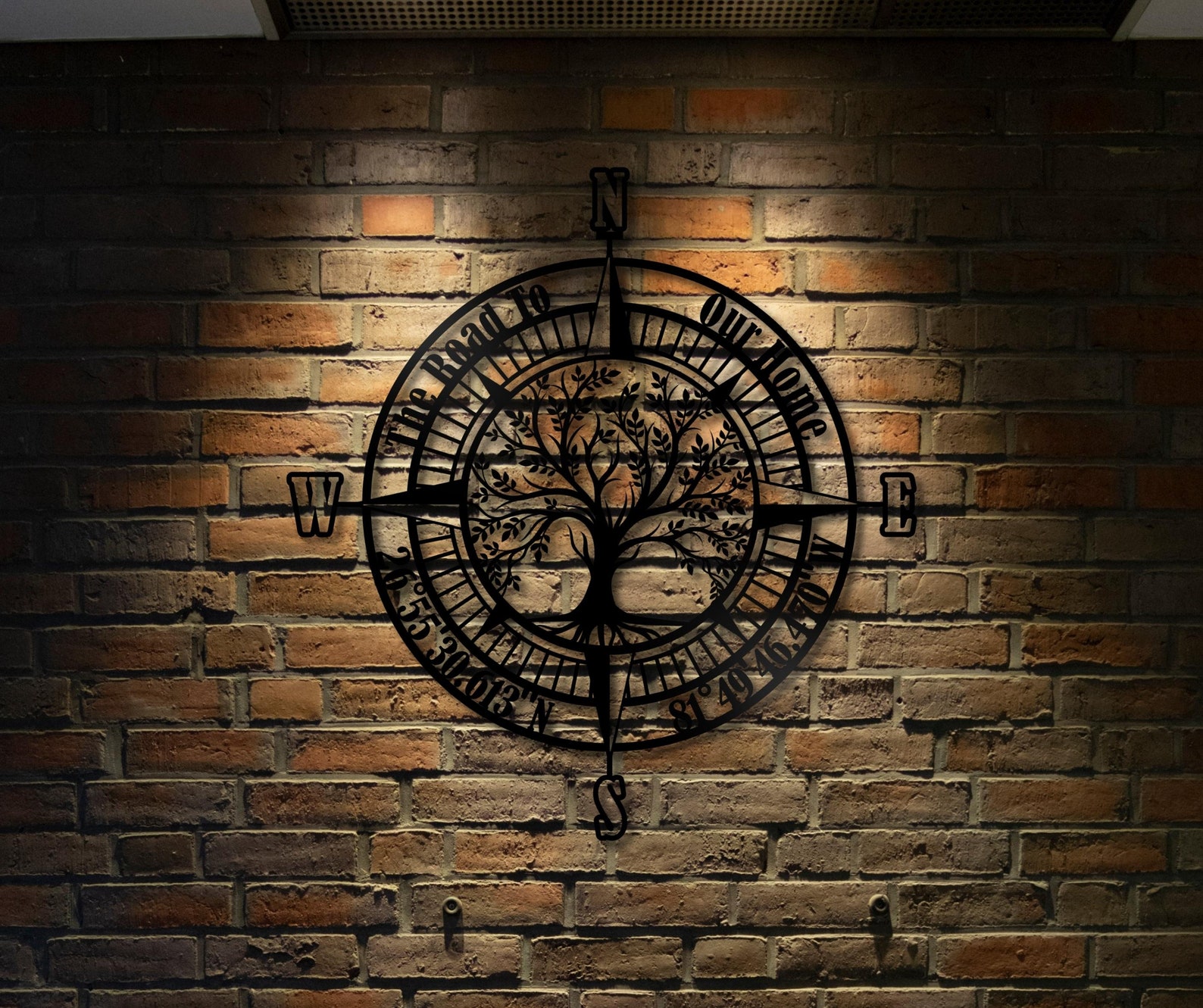 Personalized Compass Metal Wall Decor . Life Tree Themed.