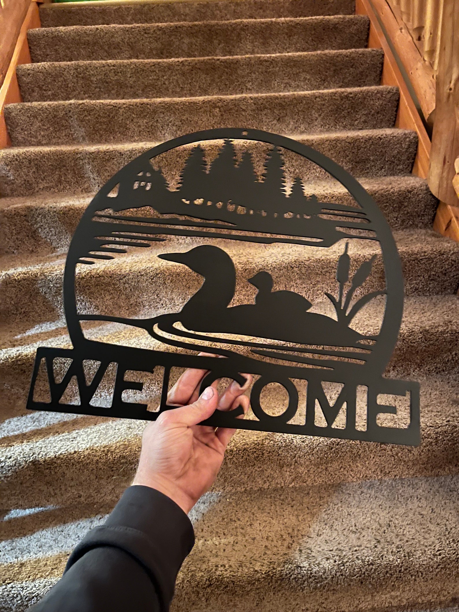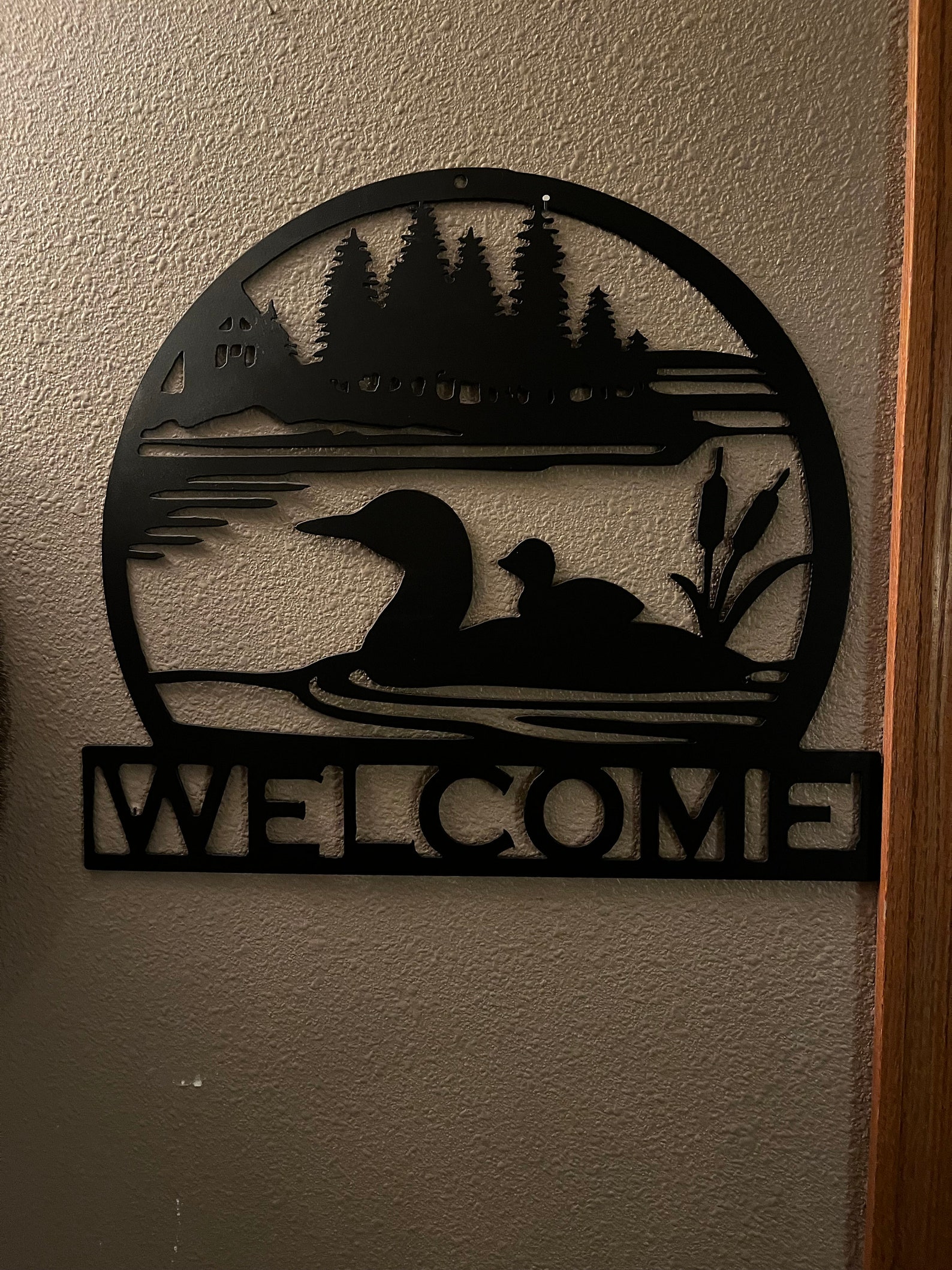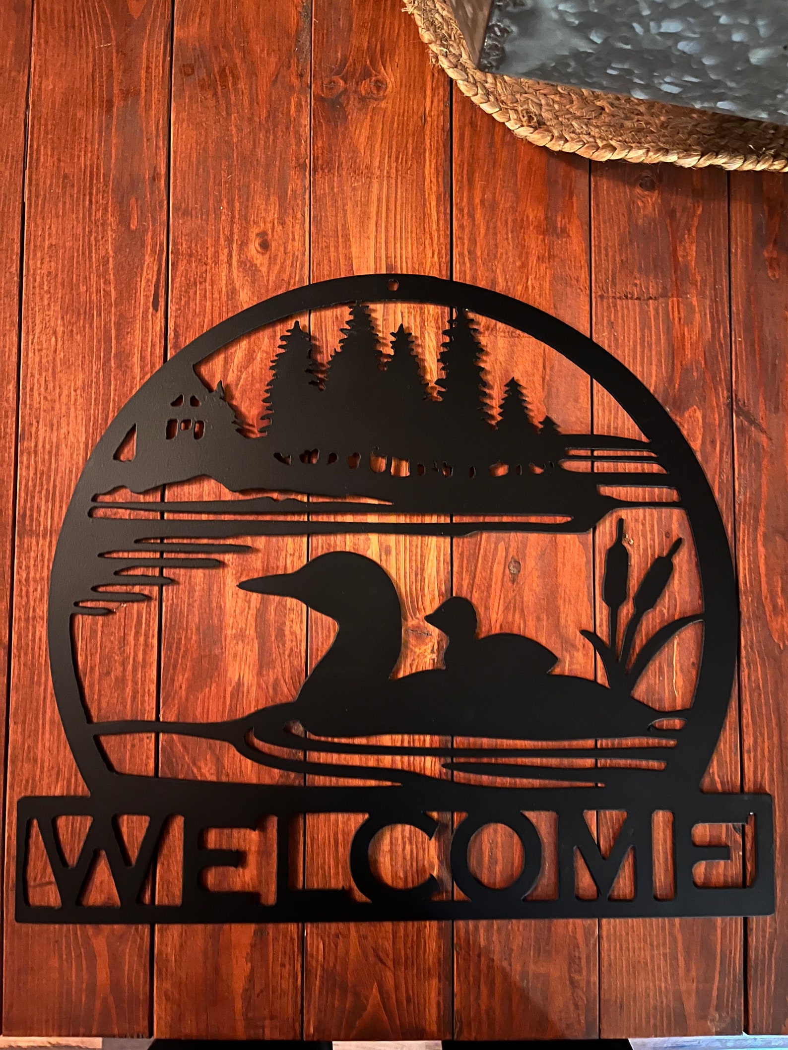This is a personalized metal sign. Instead of a last name you could put Welcome on it. If you would like a different color please message me. The size of the sign is 16HW.