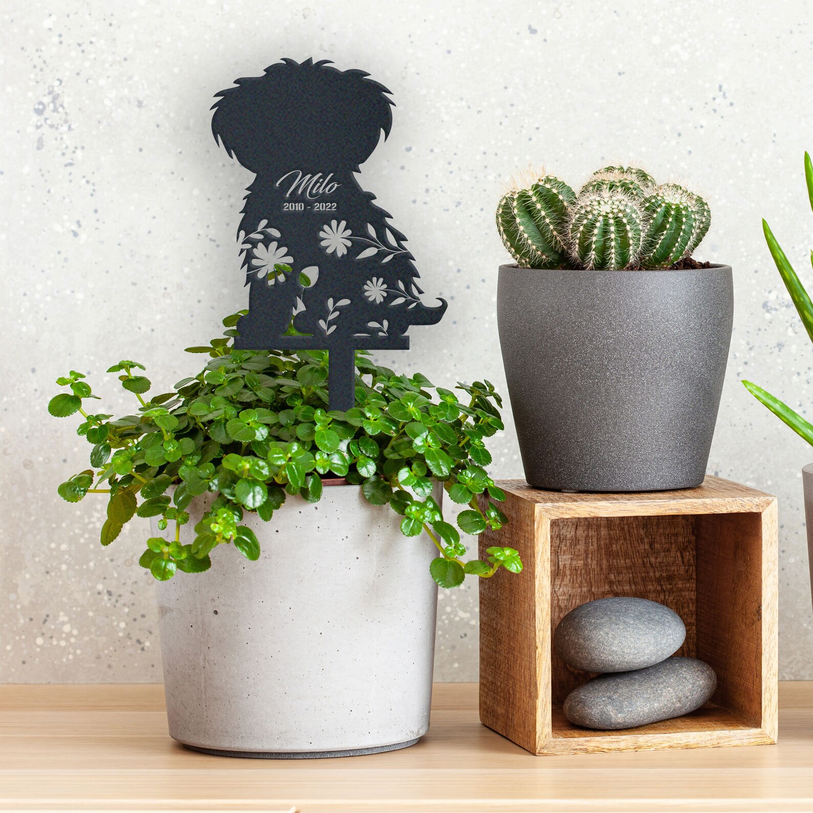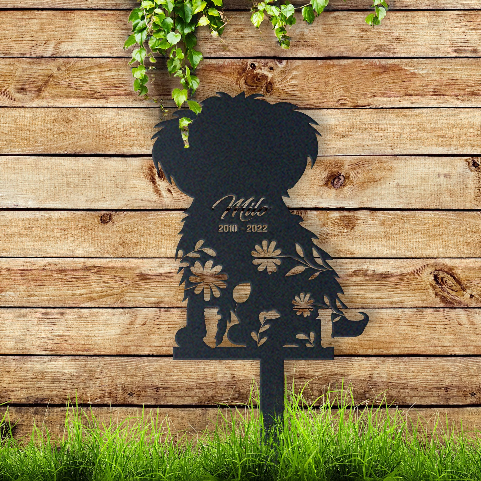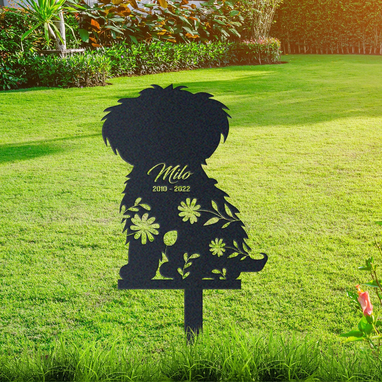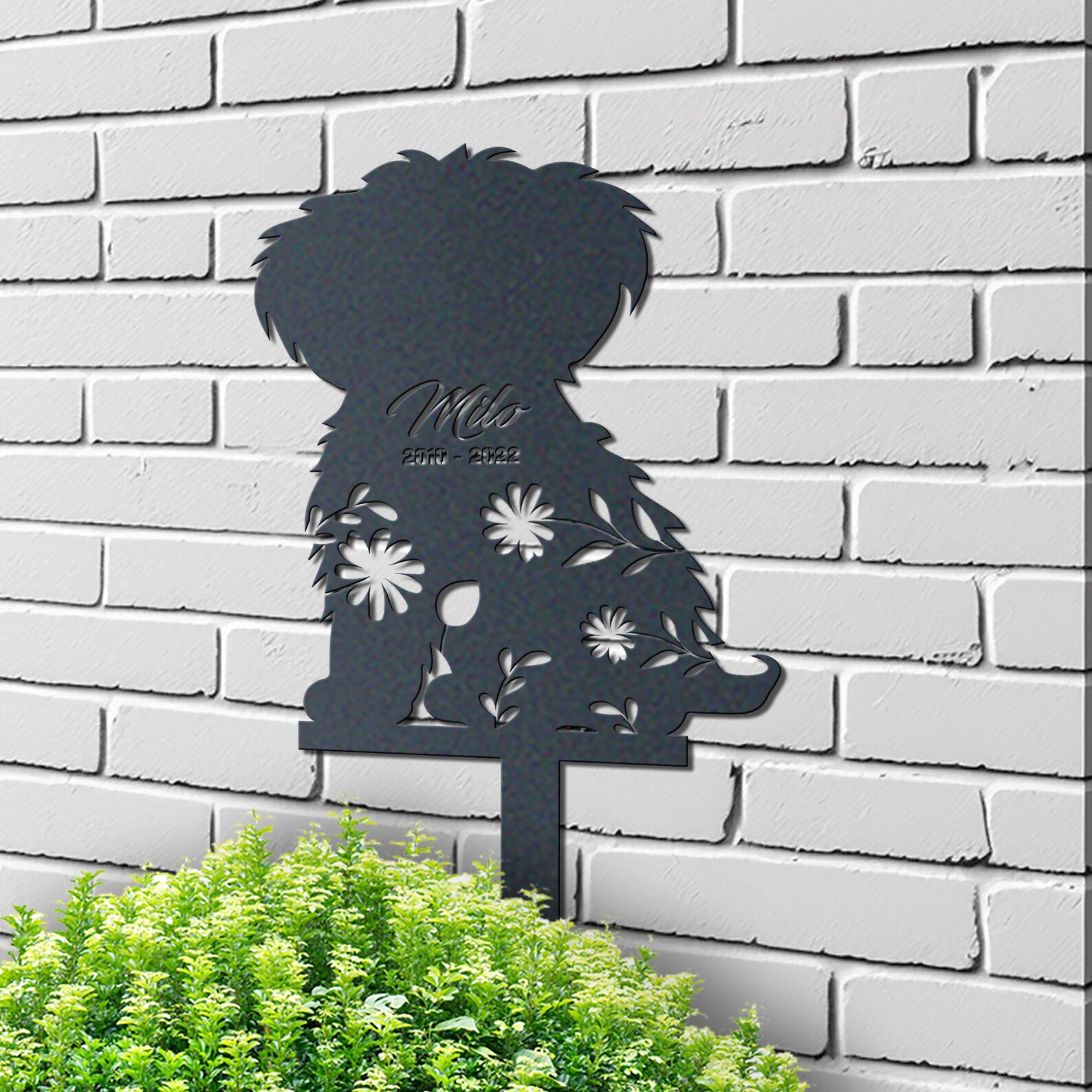 The stake features a unique design with Maltipoo silhouette, a name of your choosing, and date for you to add a special memento. It is made from a sturdy steel with powder coated.