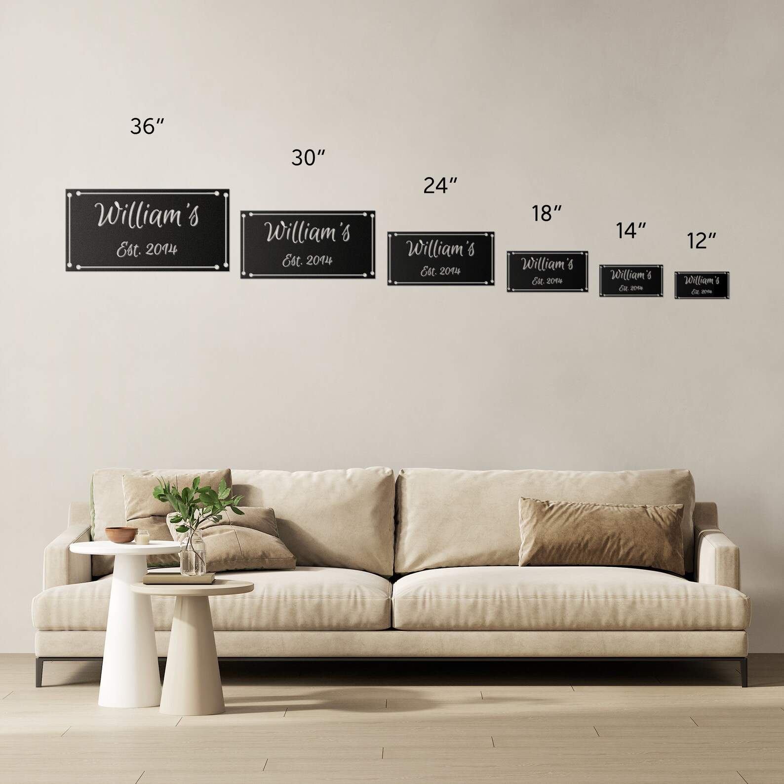 Elevate your family9;s pride and unity with our exquisite metal last name sign. A statement of togetherness, this personalized masterpiece adds a touch of elegance to your home. Showcase your legacy and make a lasting impression that welcomes all who enter. Our Metal Signs are ideal for indoor and outdoor applications and will last for years to come!