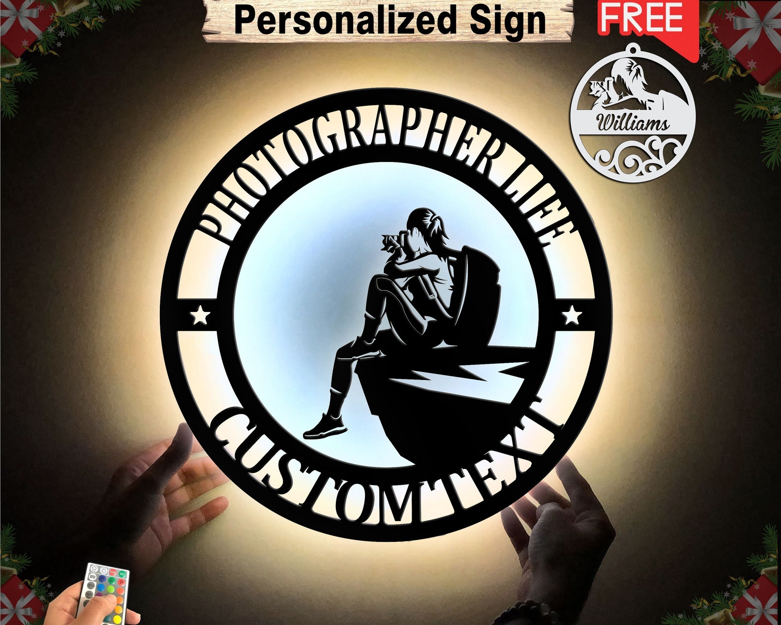 Each sign is custom made with your name next to the word "Garage" or you can add a short personalized message there instead.