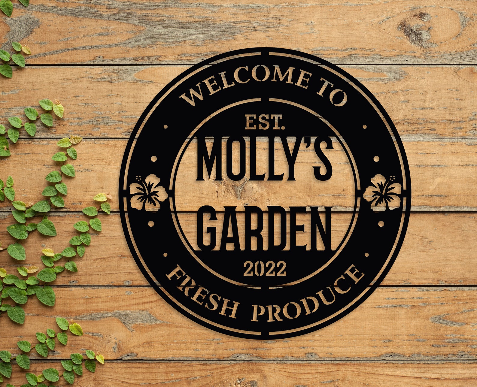 Crafted from high-quality metal, this durable and weather-resistant garden sign is designed to last. It features a customizable design, allowing you to personalize it with your own name or any desired text.