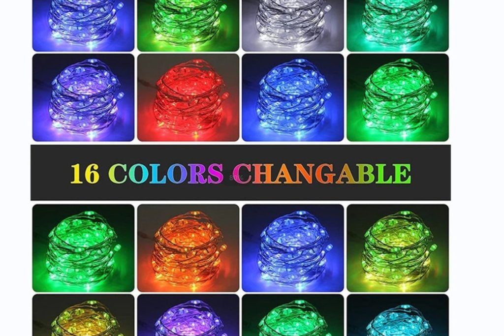 Remote control. You can use the remote control to turn the lights on and off, change the color to one of 16 vibrant colors, adjust the brightness, cycle through the various colors, and set the timer for 6 hours.