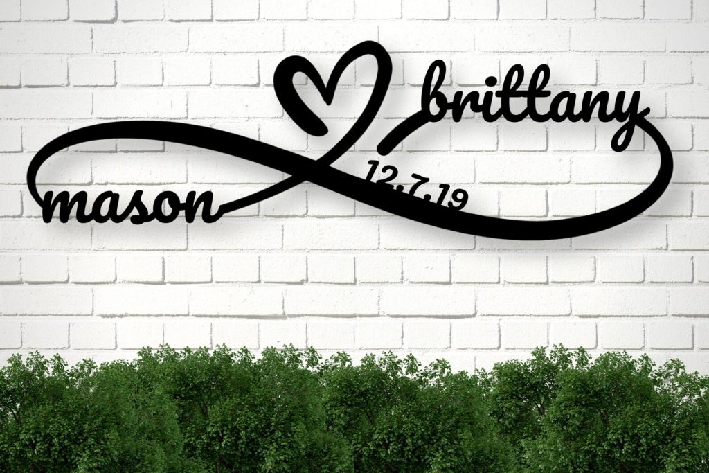 Commemorate the moment that you want to last forever with this exquisitely crafted Infinity heart sign. Customize your sign with a special phrase or the couples names and date to make them feel truly loved.