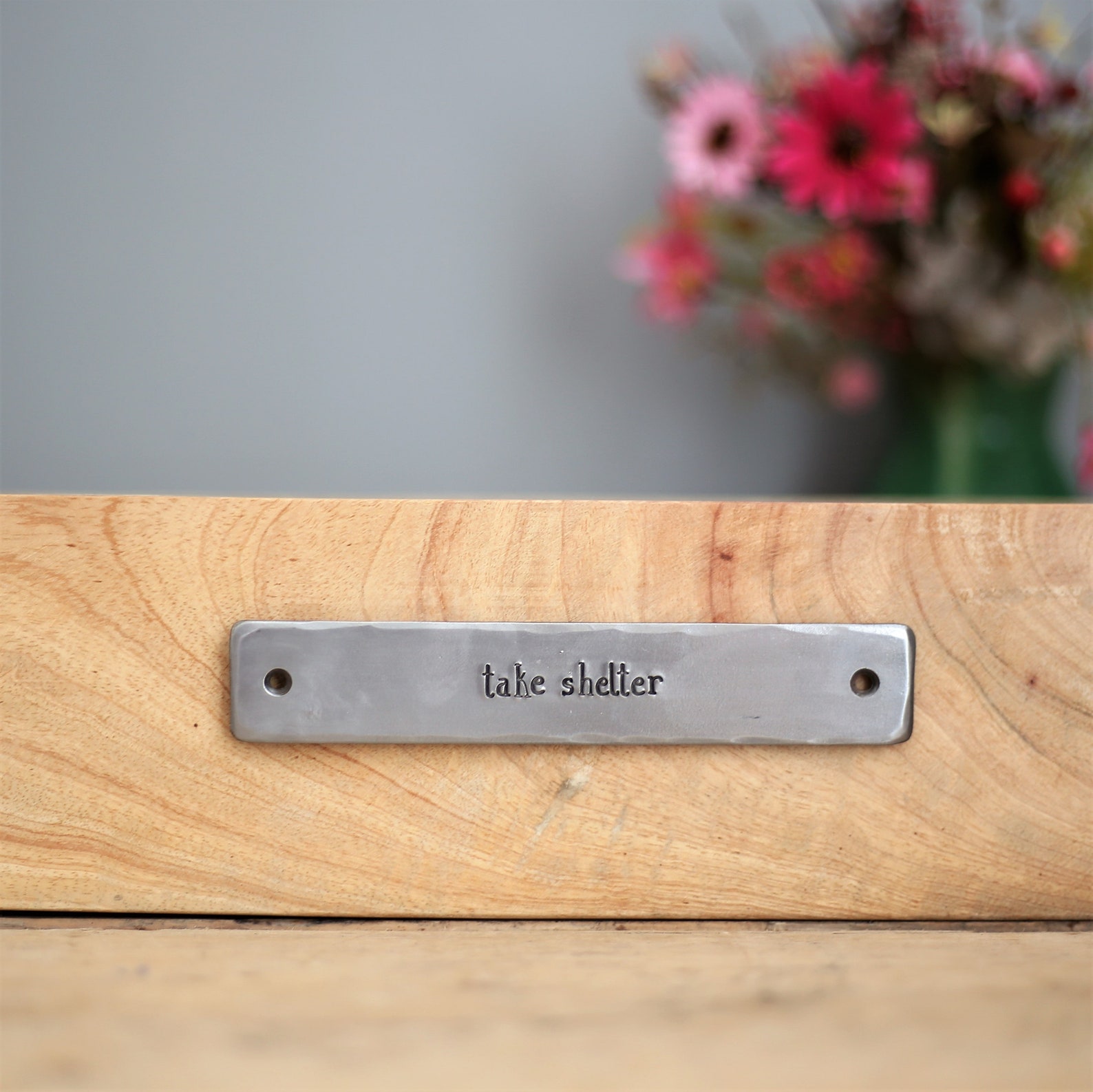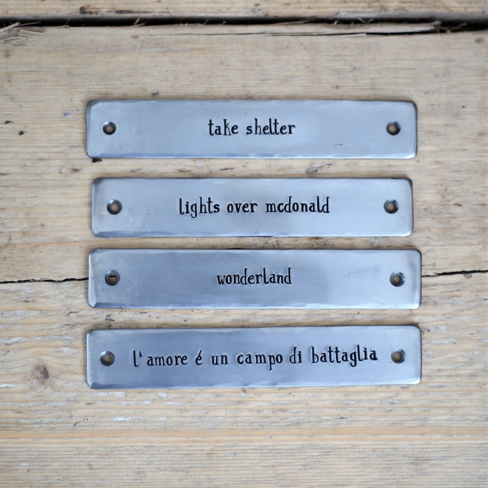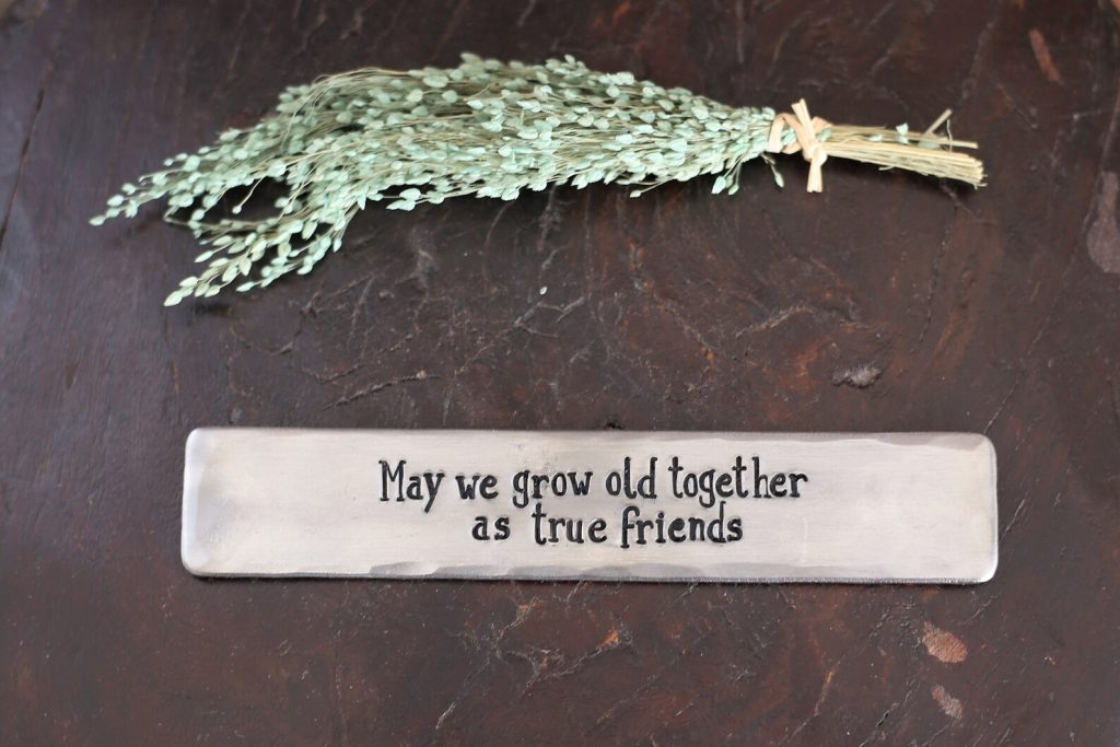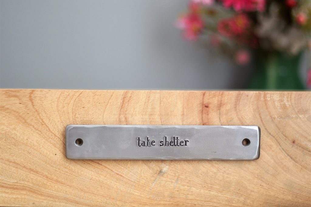 Made in our country workshop using quality steel, by hand we stamp with individual letter punches to stamp your message on the sign.