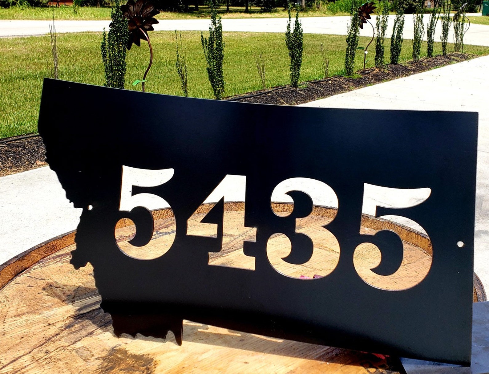 Custom Address Sign in your State Metal Sign. Dress up any porch, entry, or mailbox with this rustic metal address sign.