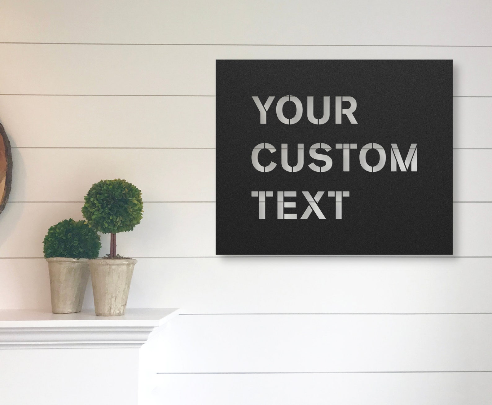 Create the perfect housewarming, wedding, or anniversary gift with this personalized metal wall art. Show them you care by giving them an inspirational quote or their new married names. Or create a custom metal wall hanging for your own home or spruce up your deck decor. These wall decor pieces can be hung inside or outside and will become a cherished decoration for years to come!