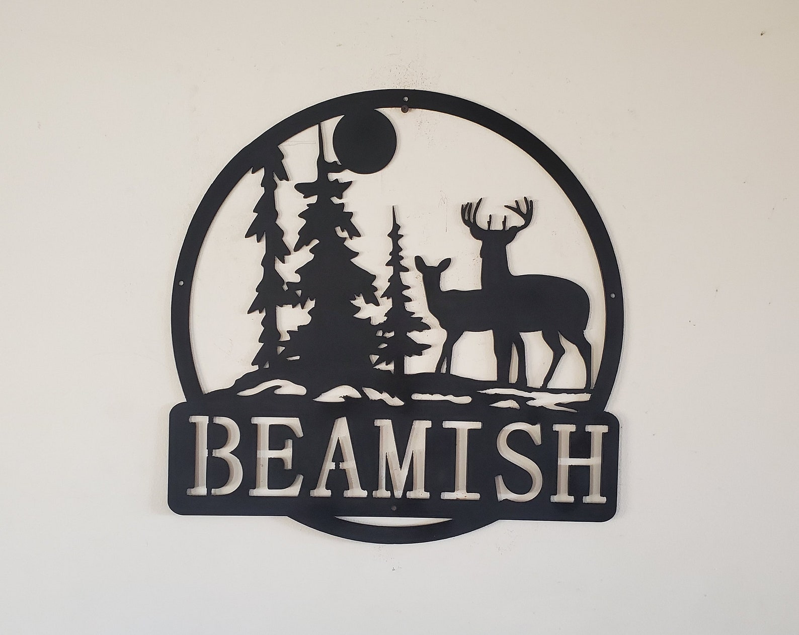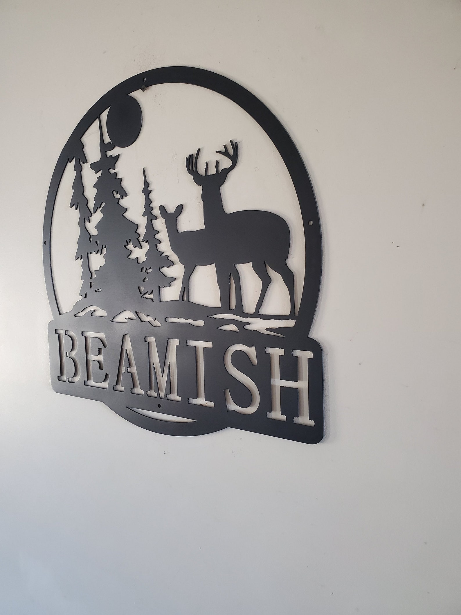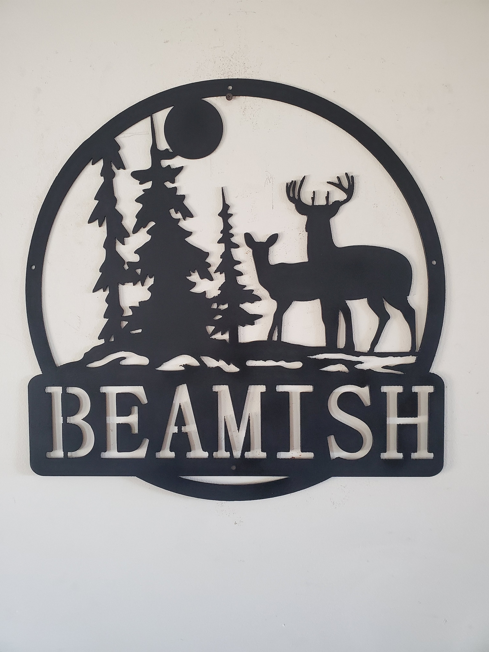 Personalized Monogram Deer Forest Scene Sign – Metal Art