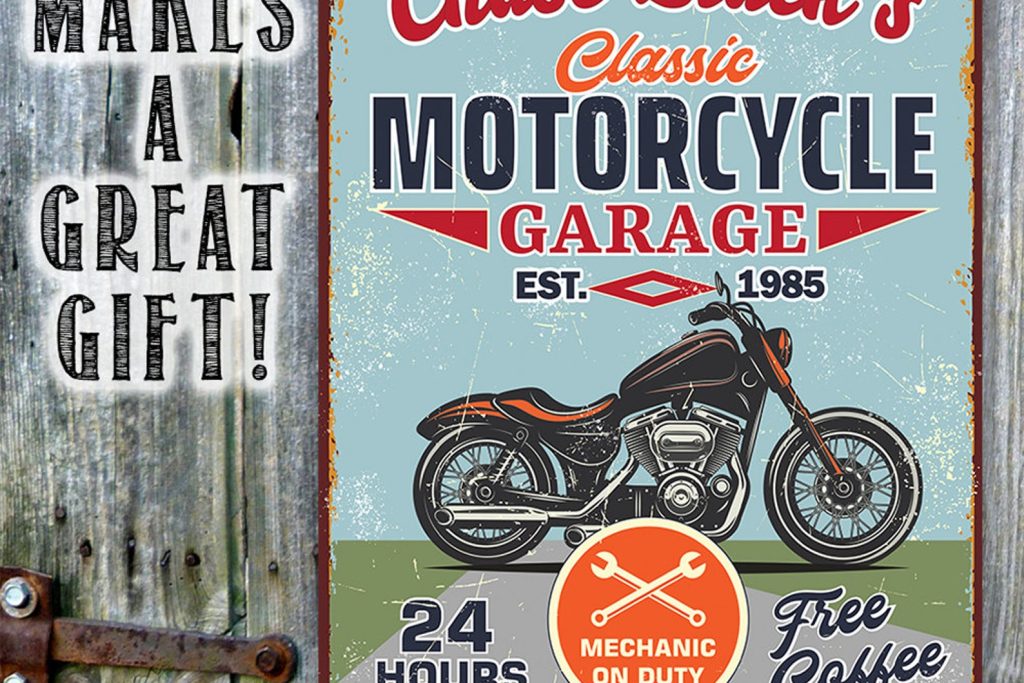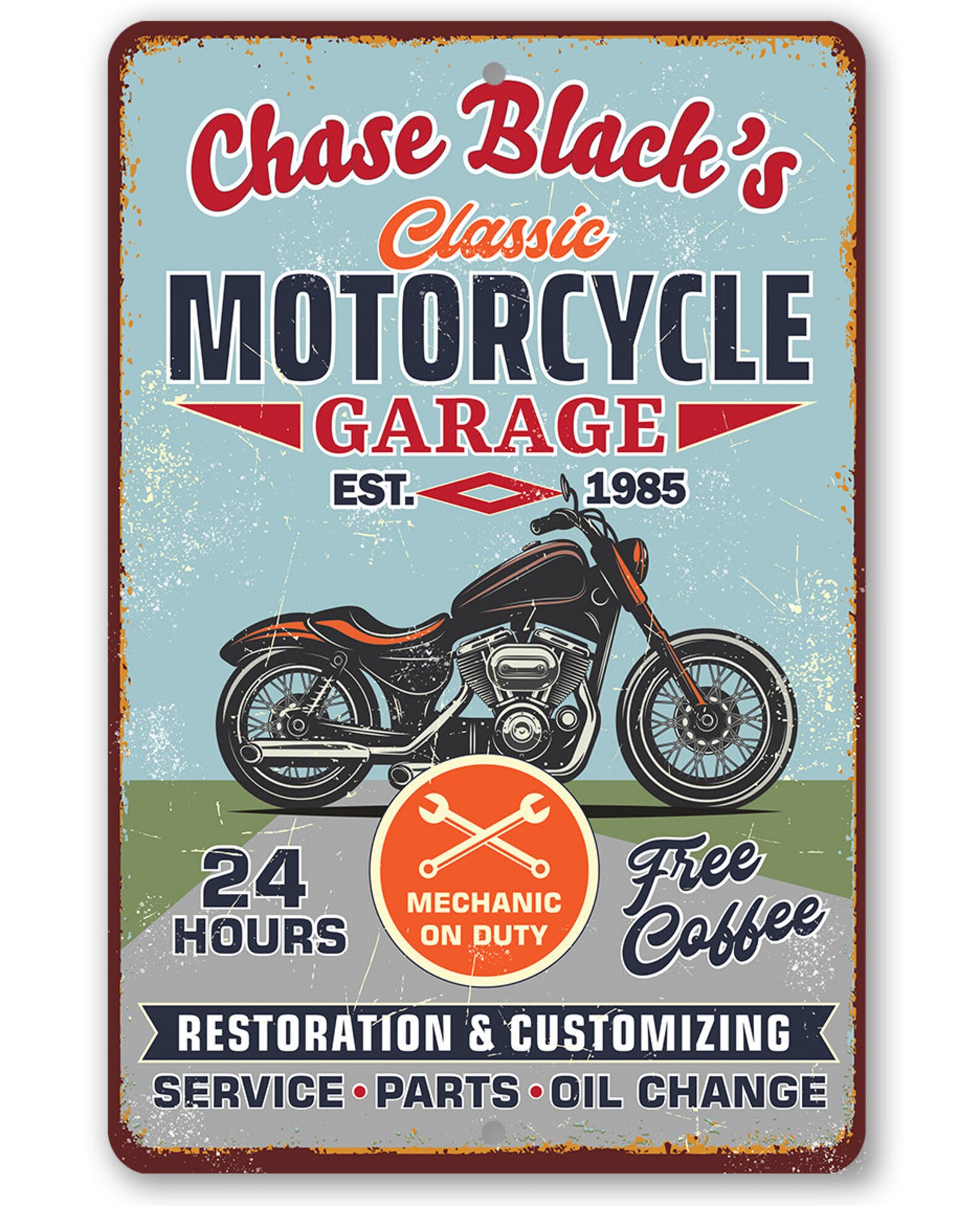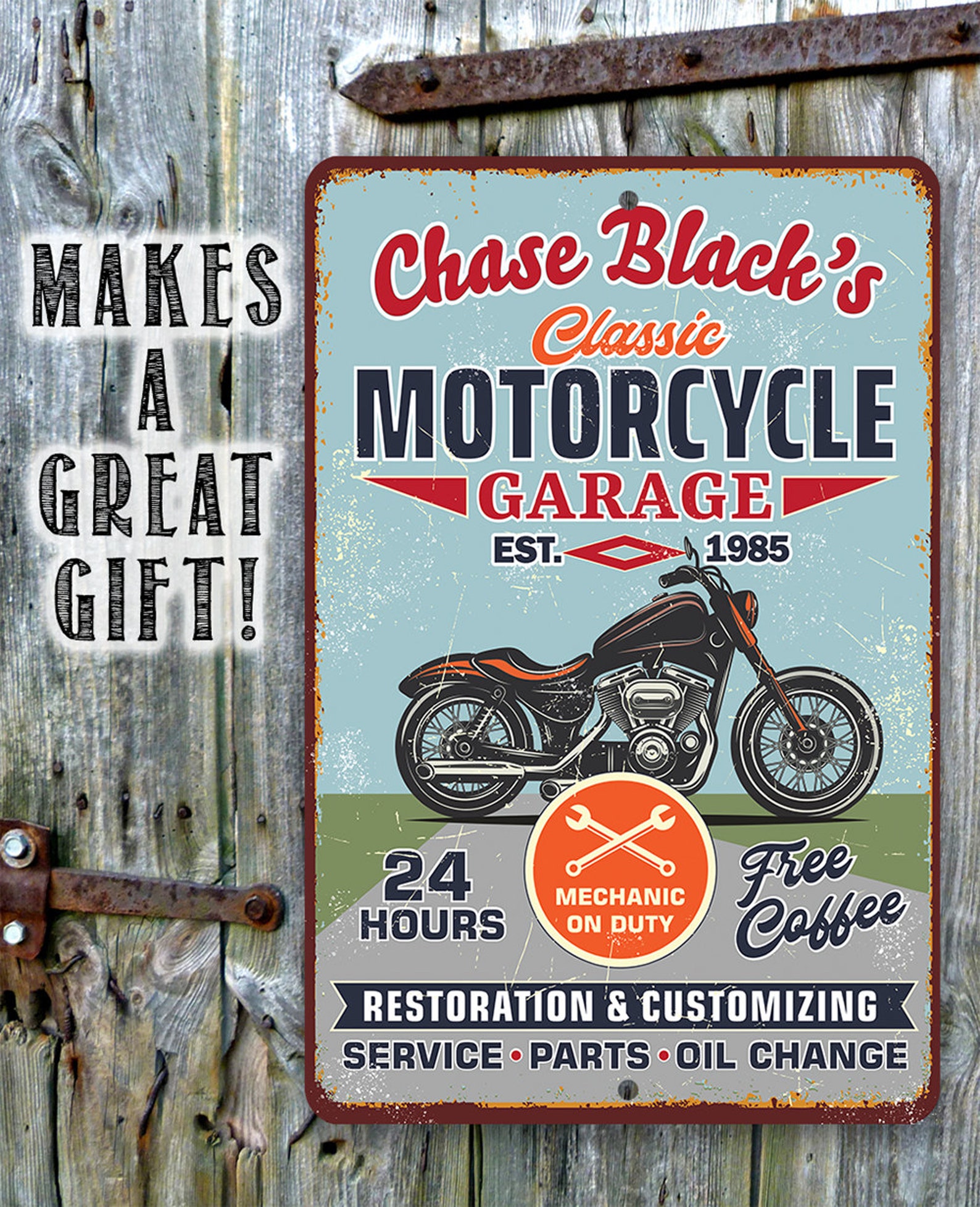Be the first to review “Personalized Motorcycle Repair Garage Metal Sign – 8×12 or 12×18”
