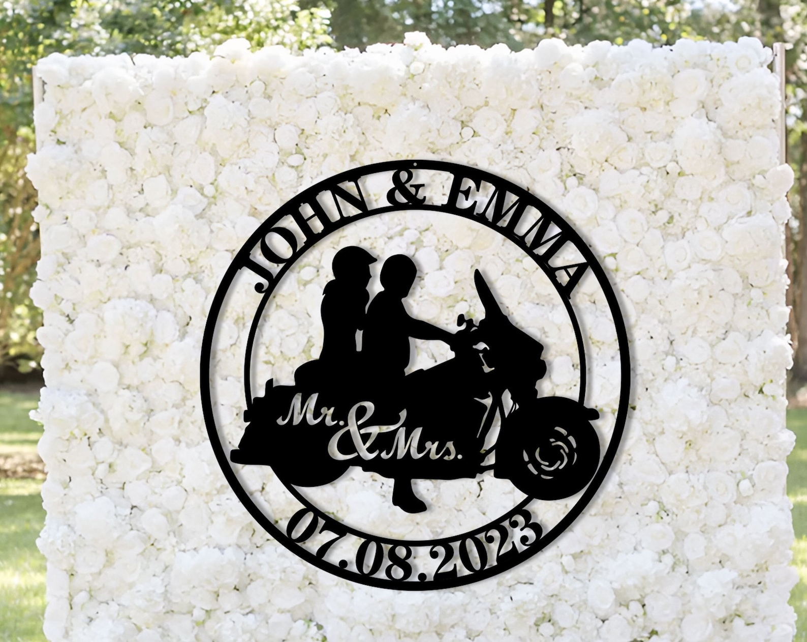 For the bike lover this personalized sign is the perfect piece to welcome people to your home. Made from 1/8" aluminum and finished in an outdoor rated black textured powder coat this piece will stand up to the elements and look amazing for years to come.