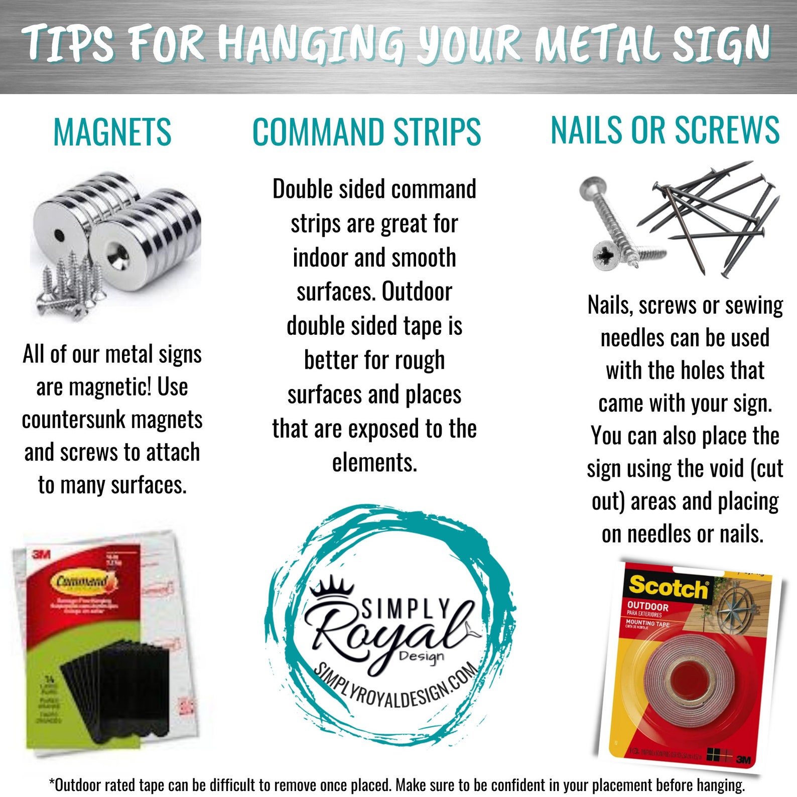 Most of our pieces are hung with small needles or nails using the existing void spaces as anchor points. This way the art hangs flush with the wall and doesn9;t take away from the design. Holes are added for hanging. Hanging hardware is not incl. Double sided command tape can also be used and our signs are also magnetic. If you don9;t want holes in the sign, please leave a note in the "notes to seller section" at checkout.