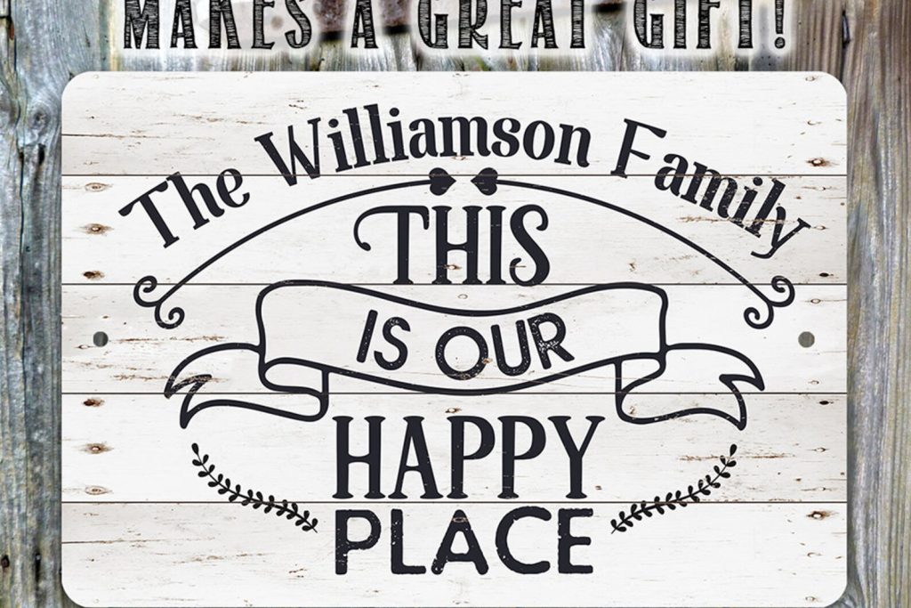 Personalized Our Happy Place Metal Sign-Tin -8" / 12" Use Indoor/Outdoor – Living Room Decor