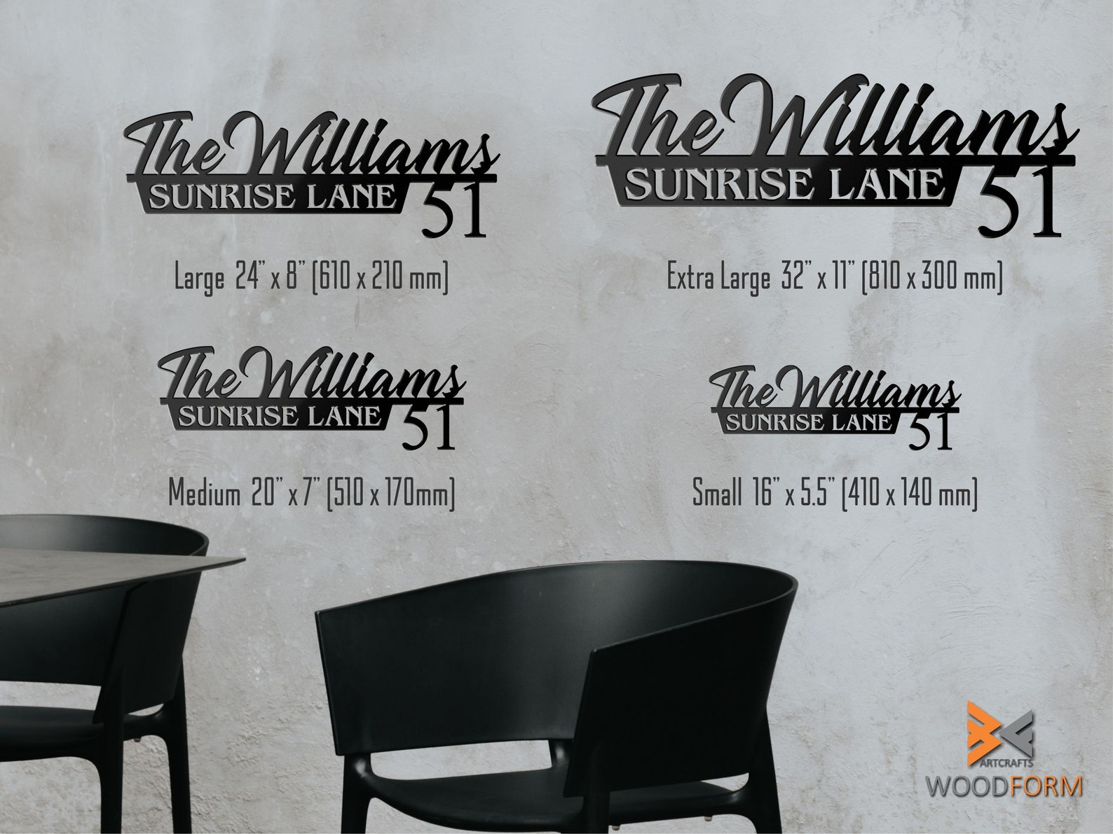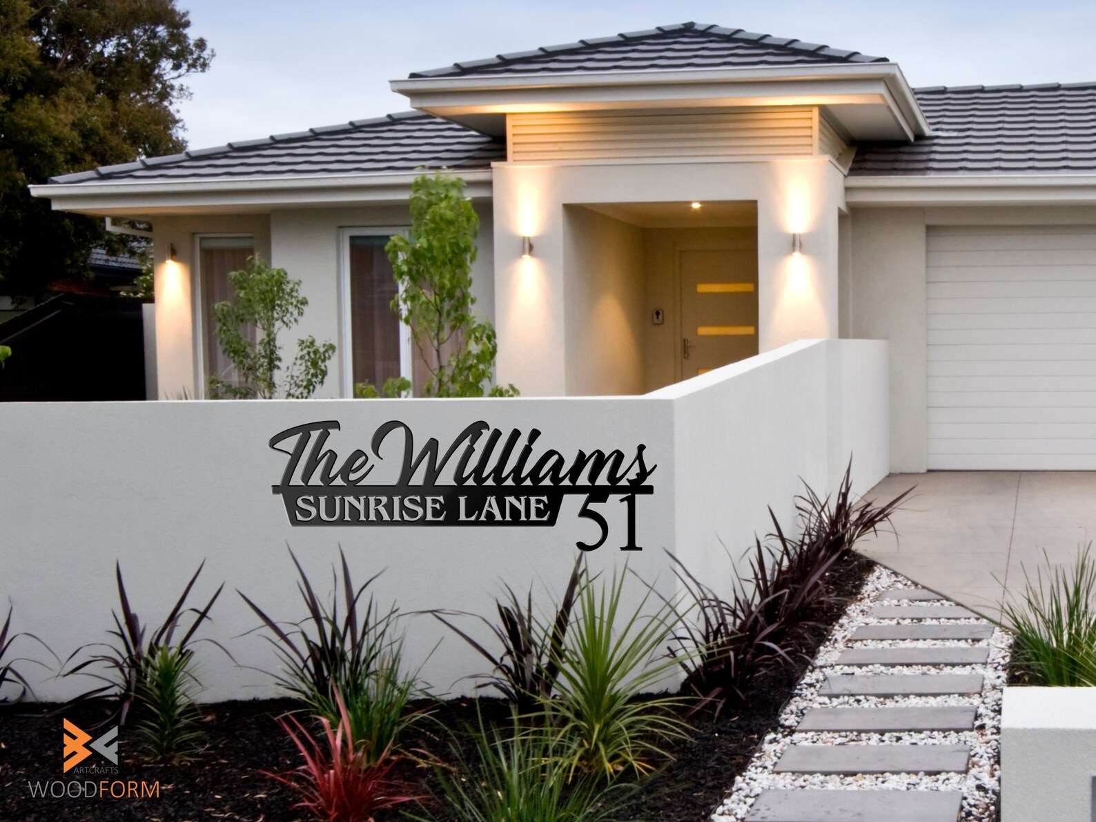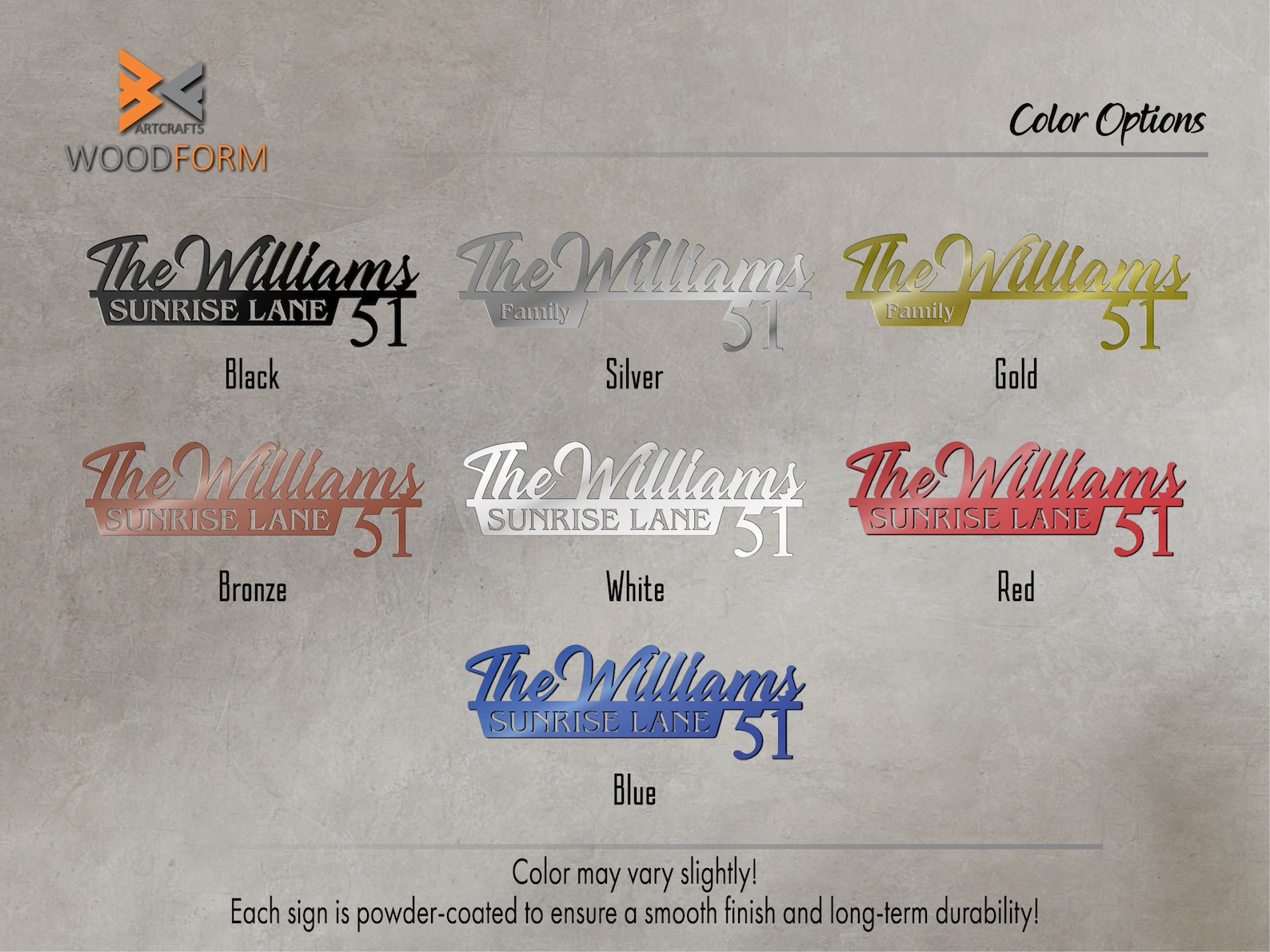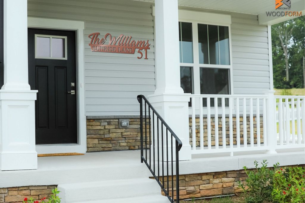 This house name number metal sign is made out of 16 gauge steel and powder coated which protects from rust and provides a durable long lasting finish that will withstand all elements inside or out.