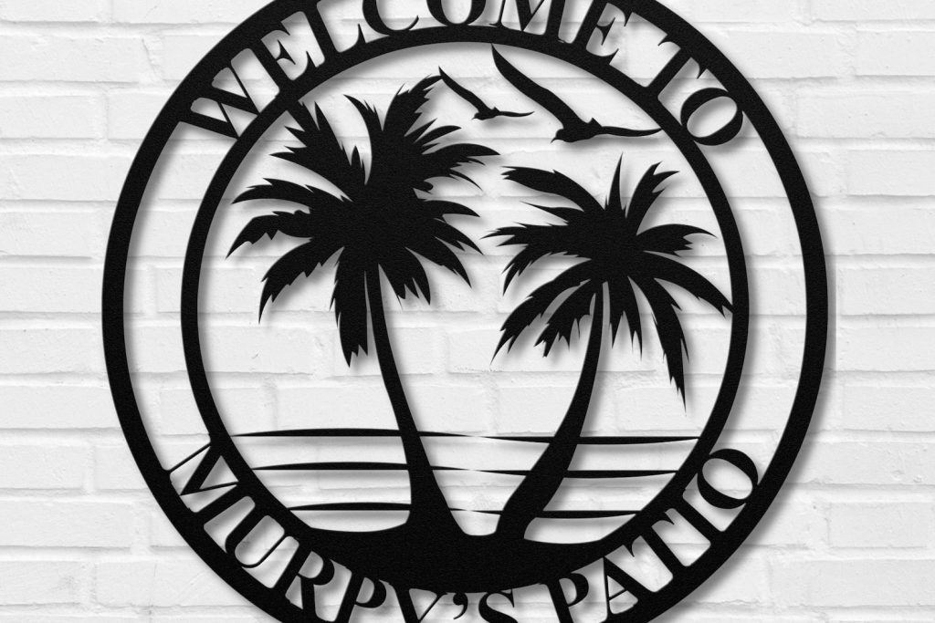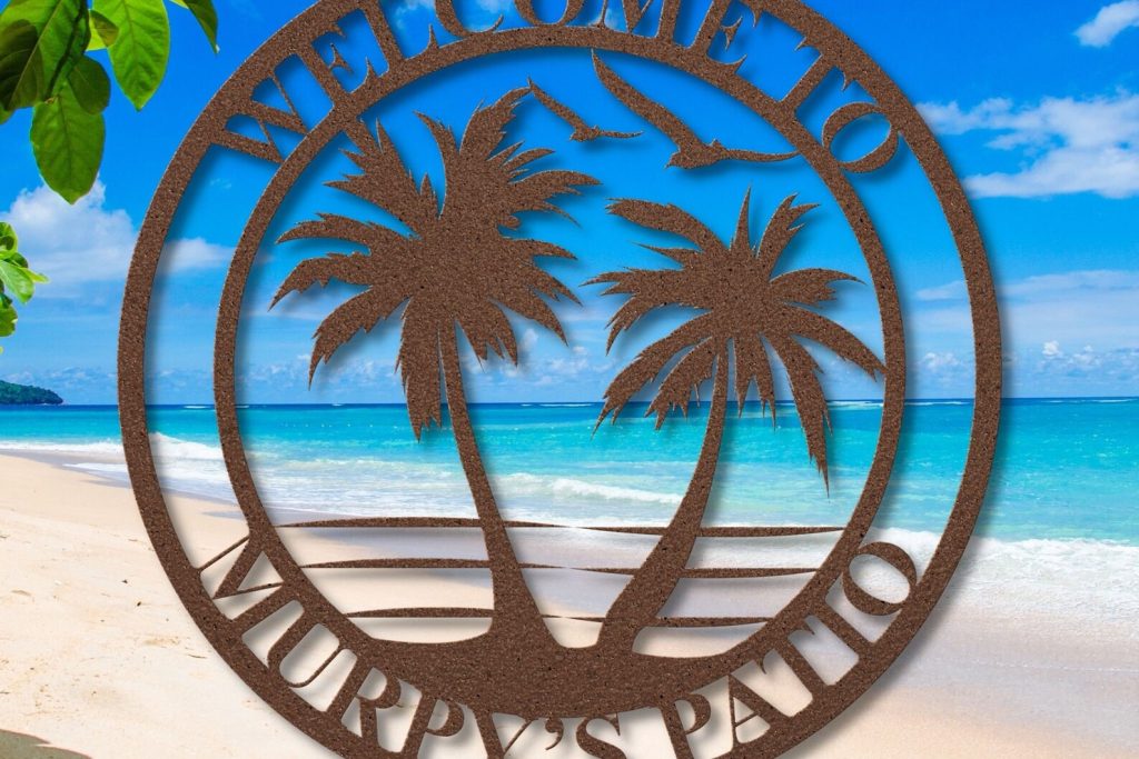 Personalized Palm Trees Metal Sign – Beach House Monogram