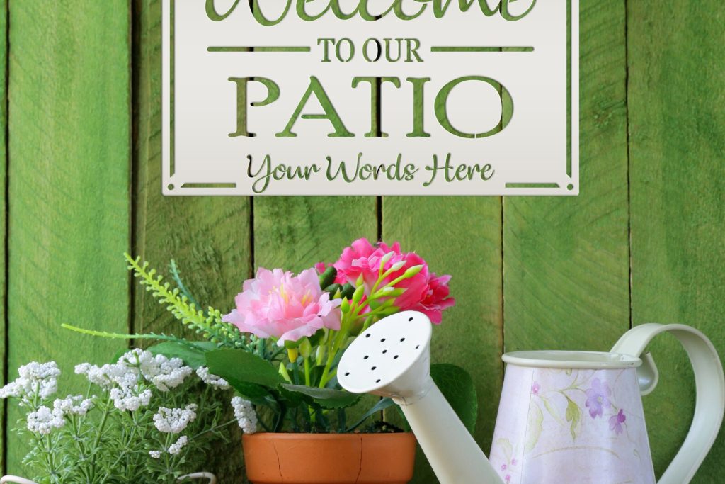 Welcome to our Patio…along with the custom wording left at checkout, on the bottom line.