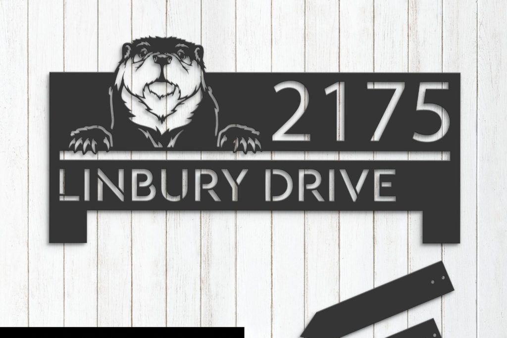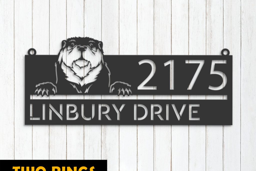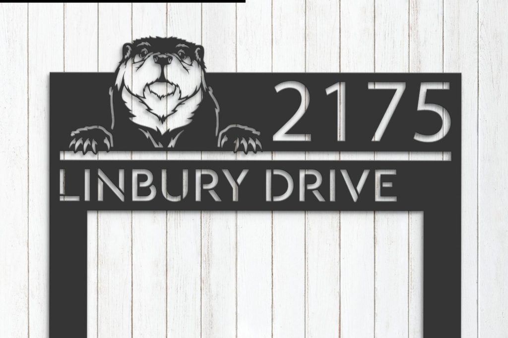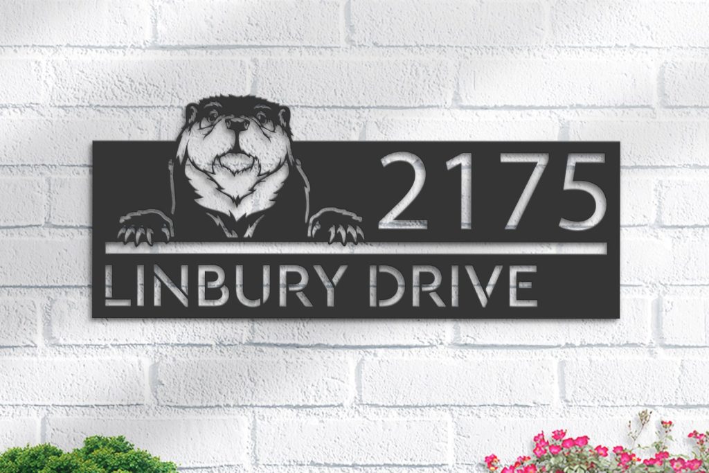 Personalized Peeking Otter Metal Address Sign
