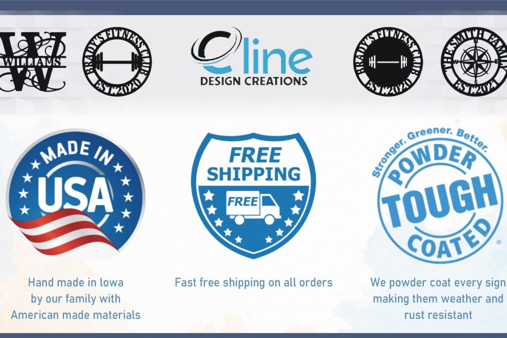 Cline Design Creations metal products are each custom made in our shop by our family. Each sign is designed to perfectly fit your home and they also make great gifts!
