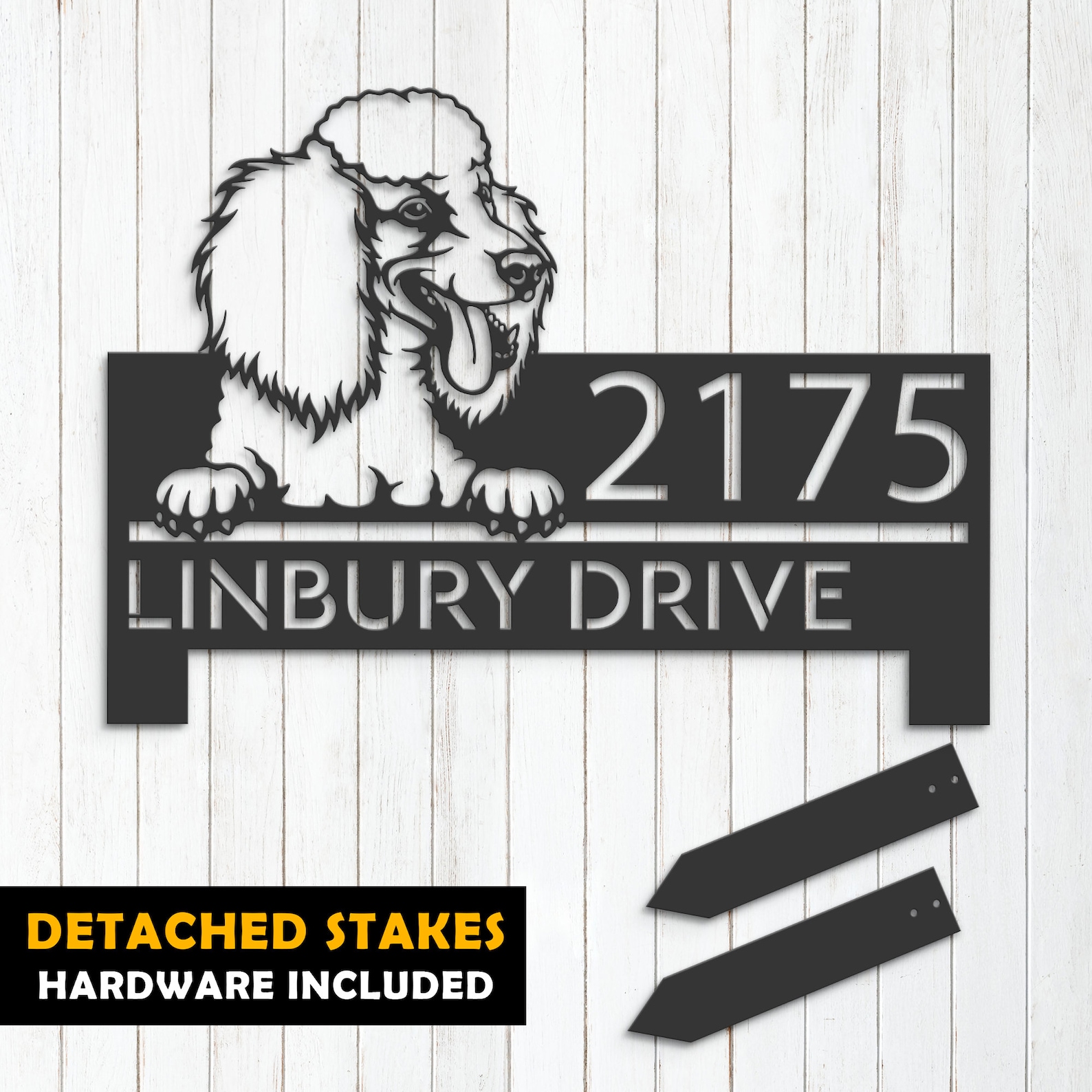 Be the first to review “Personalized Poodle Dog Metal Address Sign with Yard Stake”
