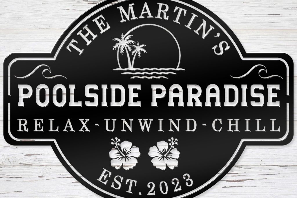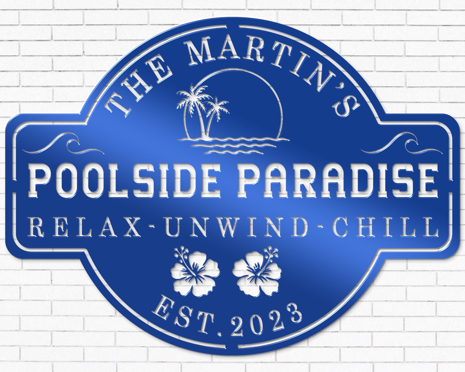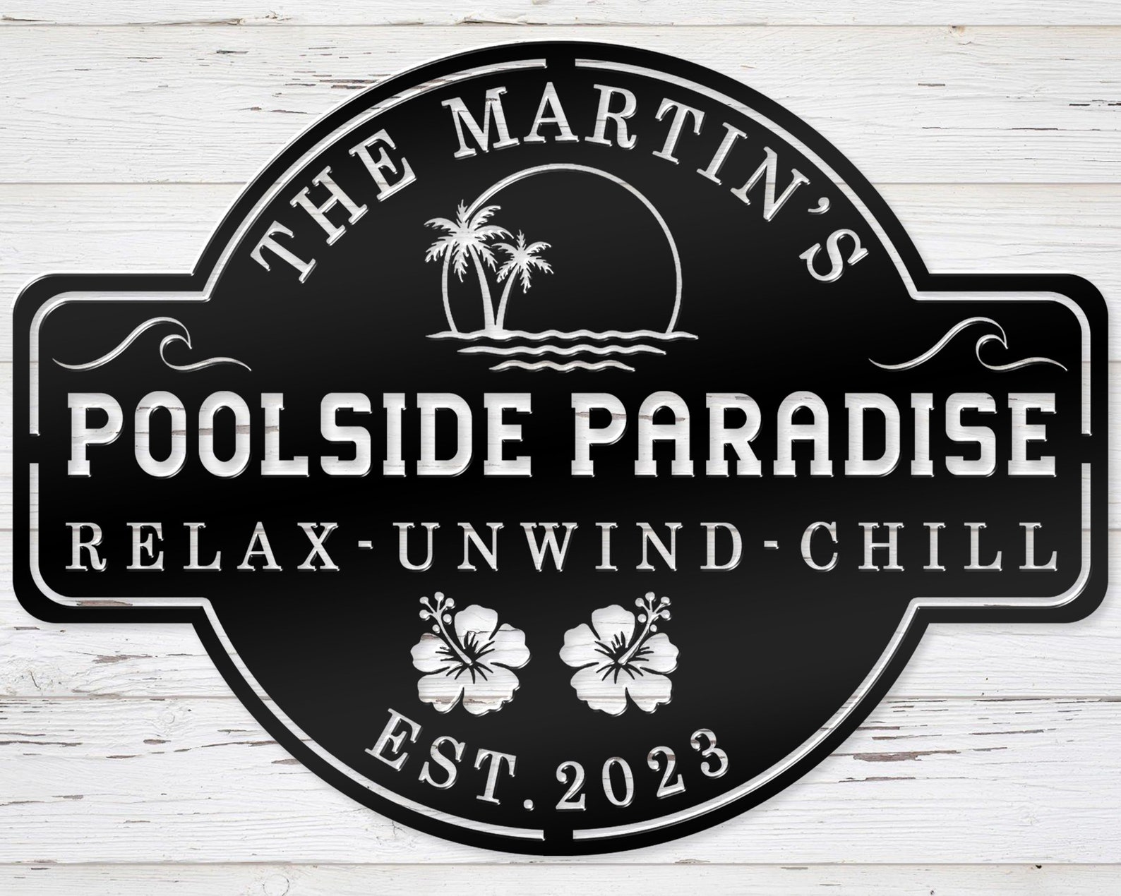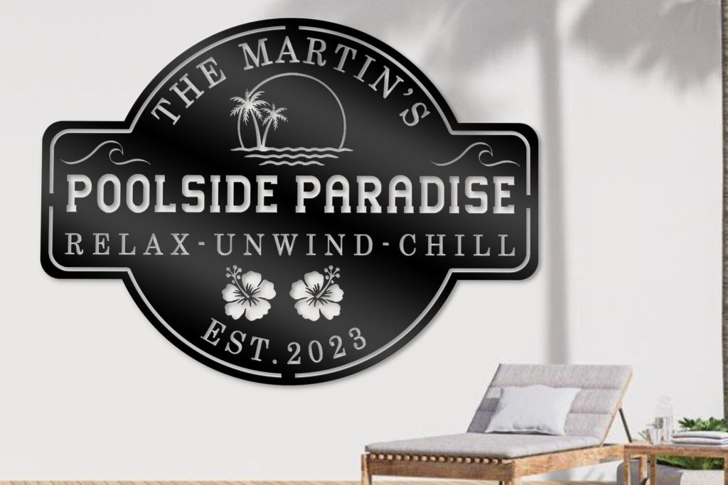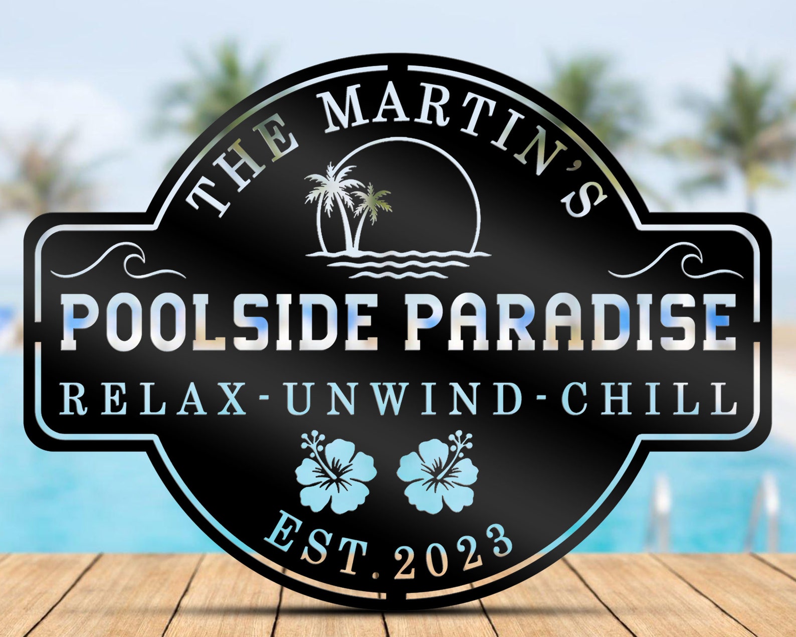 Be the first to review “Personalized Poolside Paradise Metal Sign – Hibiscus, Aloha, Palm Tree Decor”