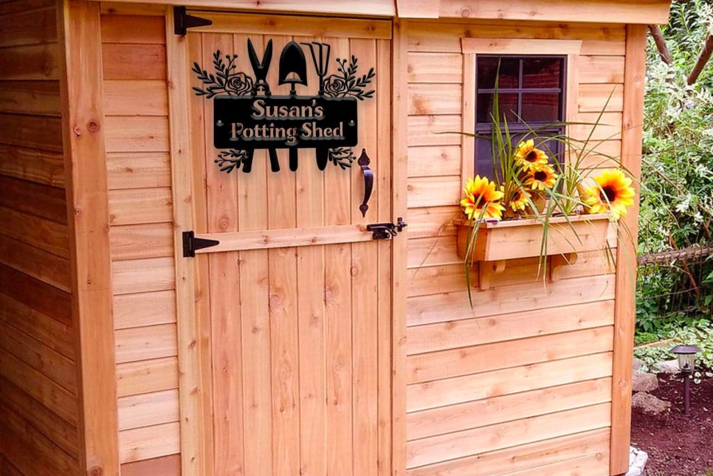 Elevate your garden with a beautiful potting shed metal sign personalized for your loved one.