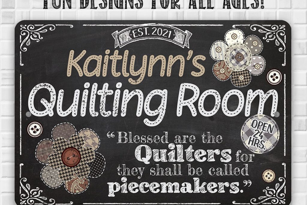 Tin – Personalized Quilting Room Metal Sign – 8" x 12" or 12" x 18" Use Indoor/Outdoor – Gift for Quilters