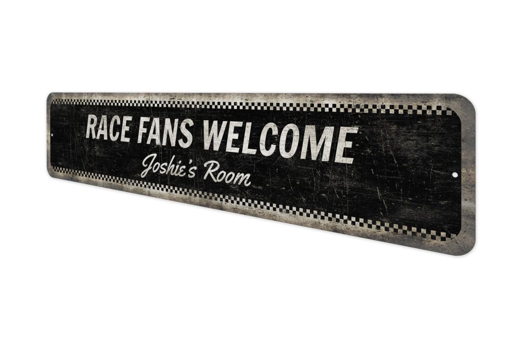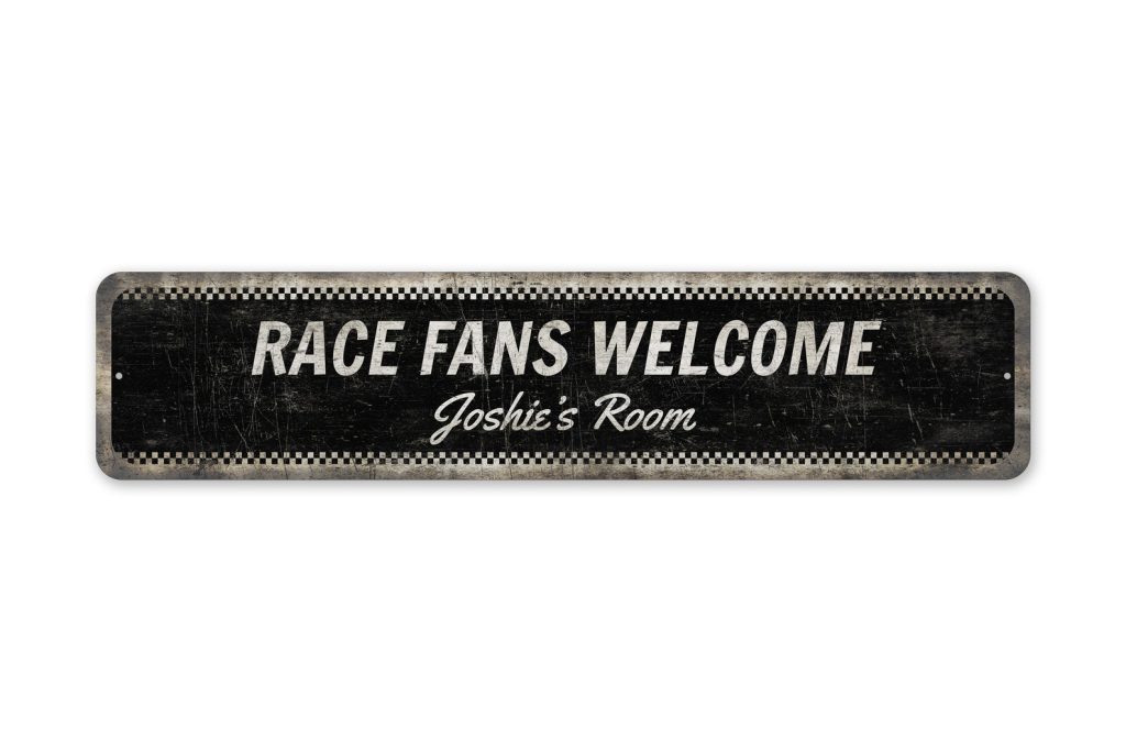 Race Fans Door Sign – Vintage Style Sign – Personalized Sign – Race Fans Welcome – Kids Room Sign – Premium Quality Rustic Metal Sign