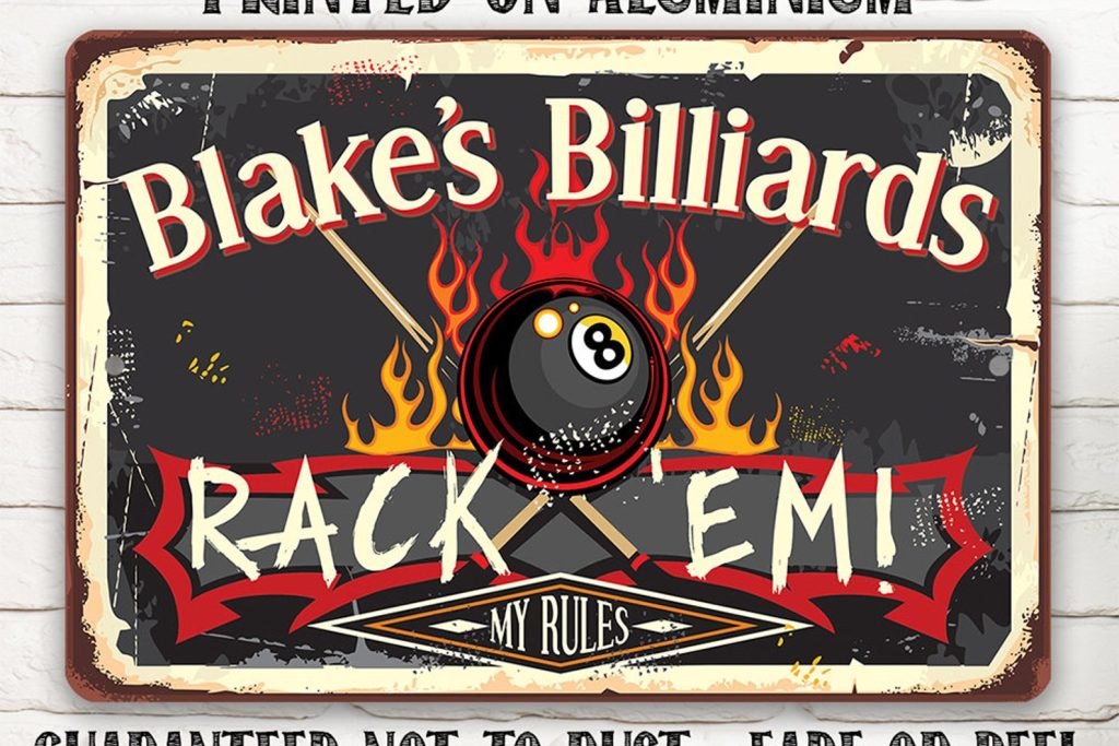 Personalized Rack ’em Sign, Game Room Decor