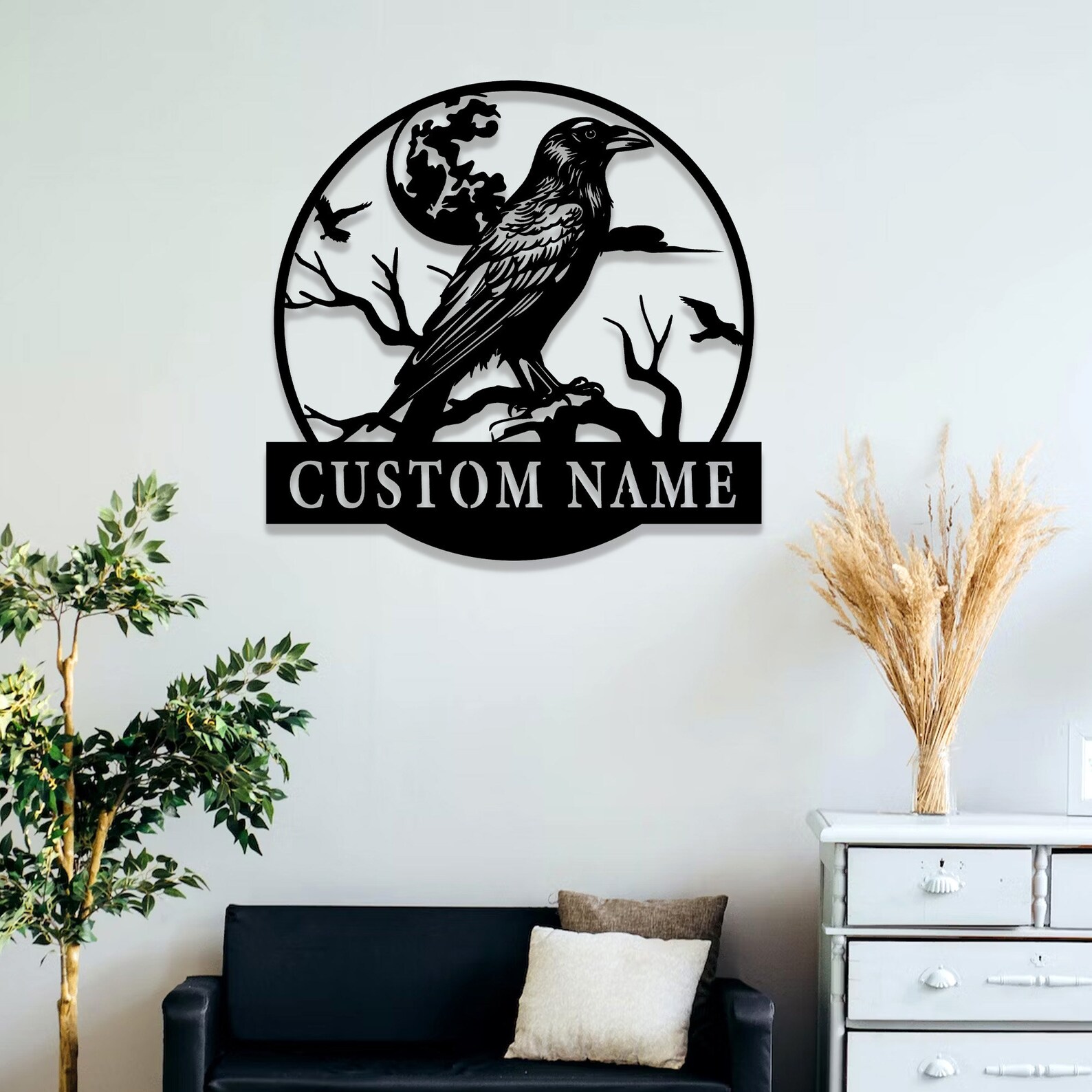 ***Personalized Raven Metal Wall Art, Custom Raven Metal Sign, Metal Crow Wall Art, Raven Decor, Birdwatch Sign, Gift for Bird Lover, 8" to 24***