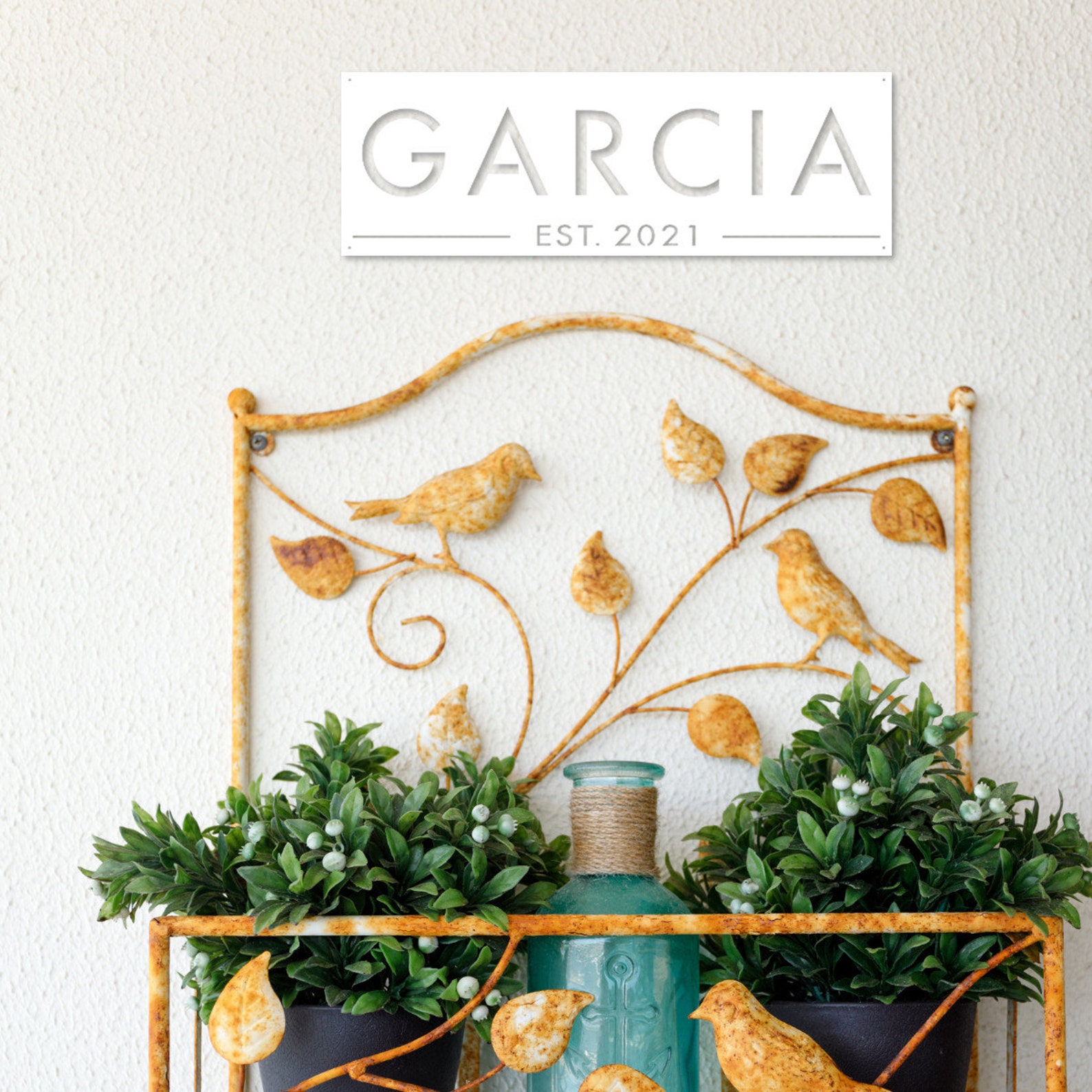 This metal last name sign is made out of 16 gauge steel. Hand prepped, sanded and powder coated for a durable, long lasting finish for indoor or outdoor use.