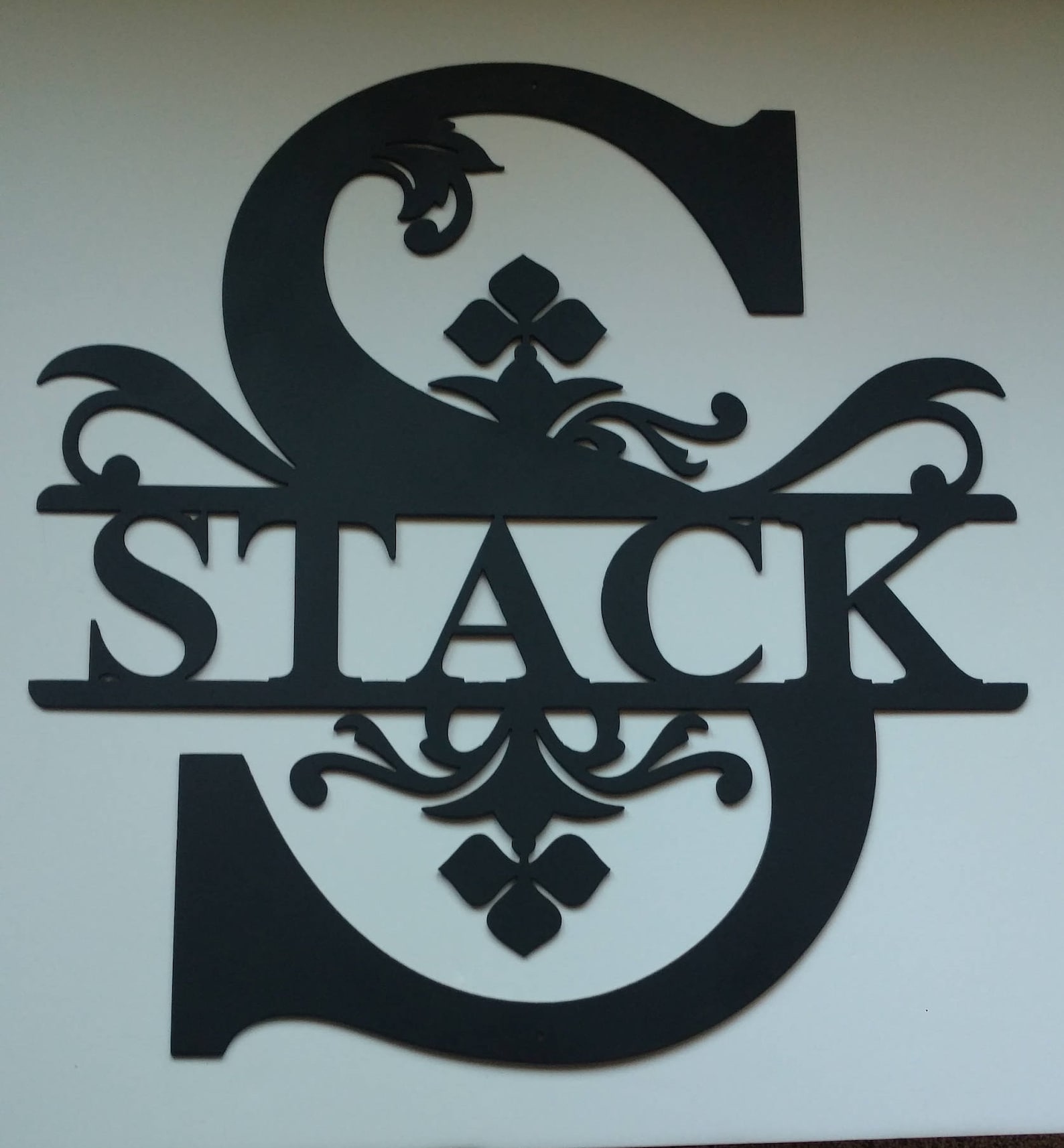 This sign is personalized with your family initial and has your family name running through the middle. This monogram is custom made with a CNC plasma cutter out of 14 gauge steel and measures approximately 12" tall, 20 tall or 30" tall.