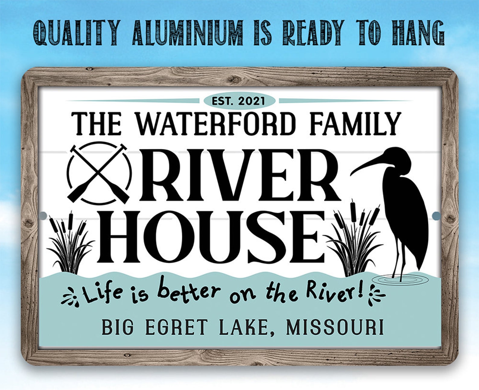 Be the first to review “Personalized River House Metal Sign, 8×12”