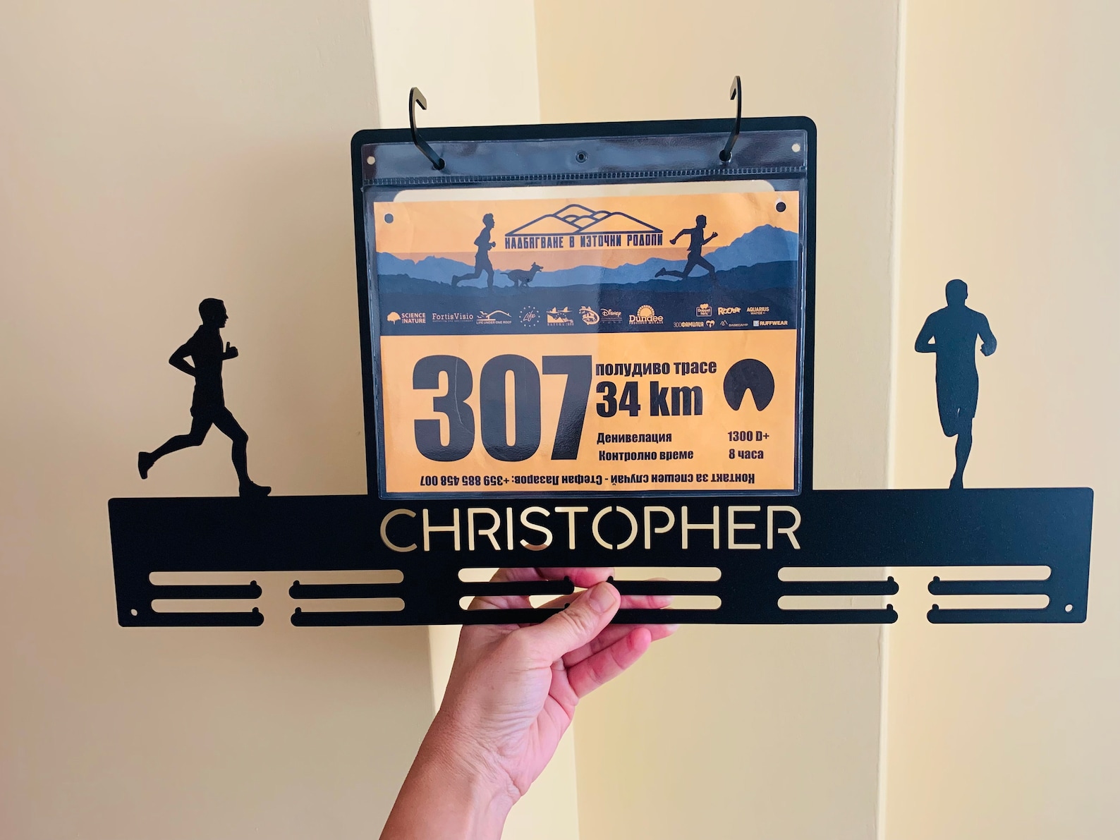 – 1 medal hanger with custom name