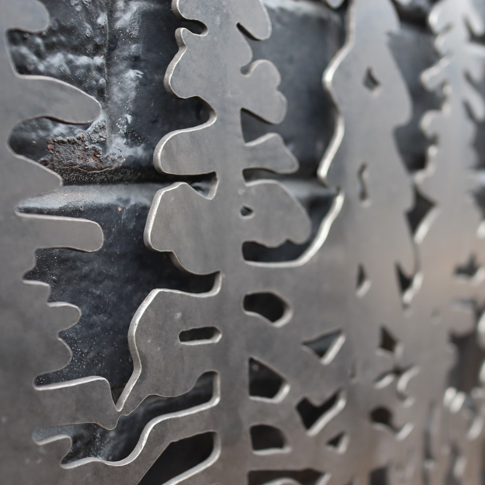RAW STEEL -DARK (EVEN BLACK) – Raw Steel is a highly recyclable material that gets reused over and over again. This makes the finish and color vary from piece to piece, to sometimes even black. Left untreated, the Raw Steel will rust and develop a natural patina completely unique to your environment.