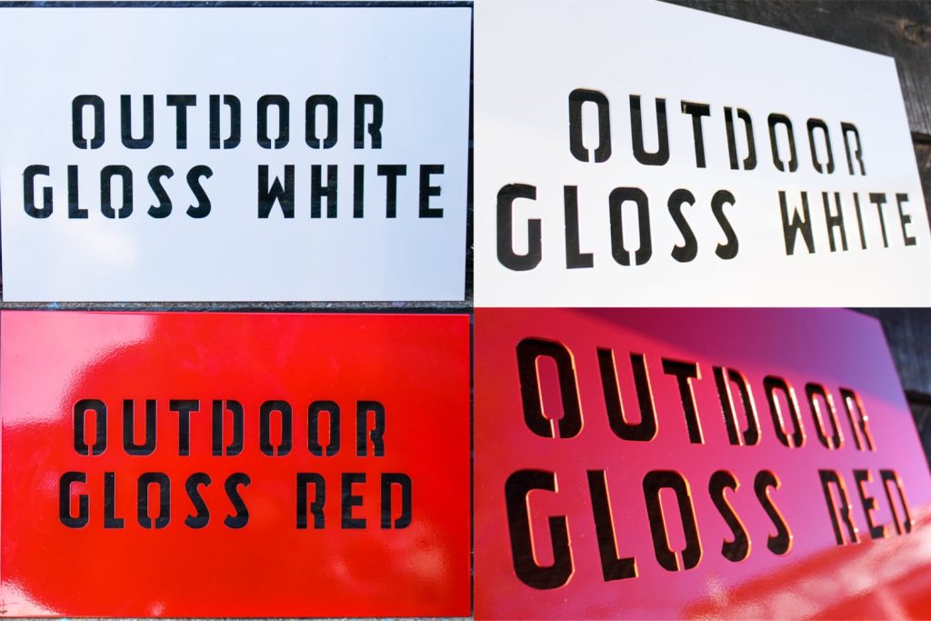 OUTDOOR GLOSS CLEAR – The Outdoor Gloss Clear finish is a glossy clear powder coat that makes the steel darker, sometimes even black. This UV protected finish will protect the steel in the toughest conditions including outside in wet and salty environments. Powder coat is a thick industrial coating that is VOC free and holds up for many years.