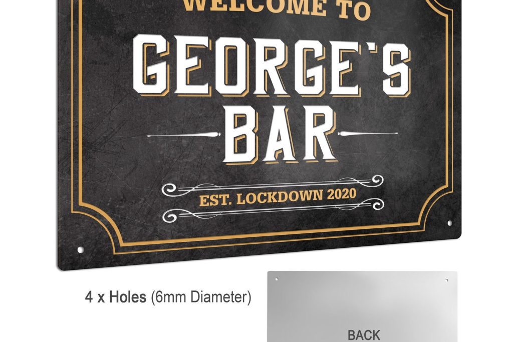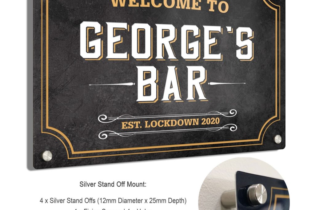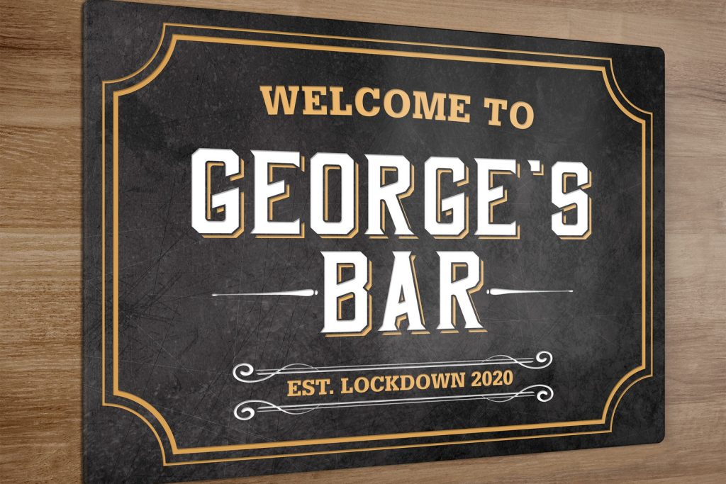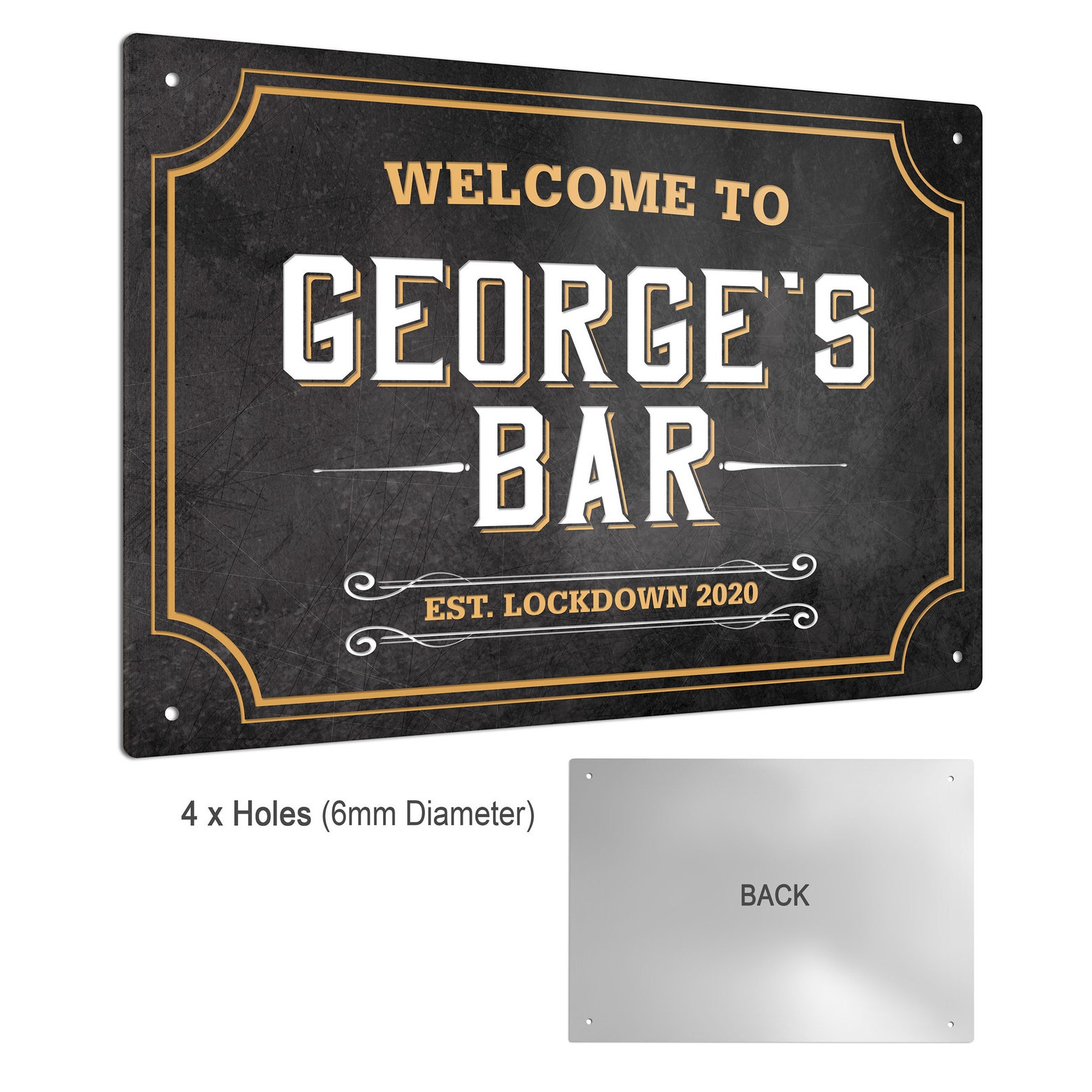Personalised Welcome Bar Sign with Rustic Black Chalk Board Background.