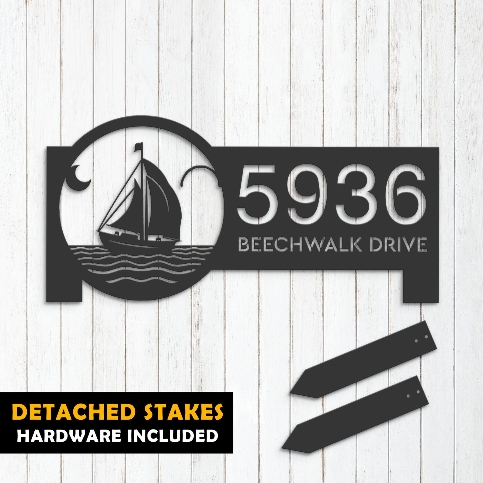 Personalized Sailboat Metal Address Sign