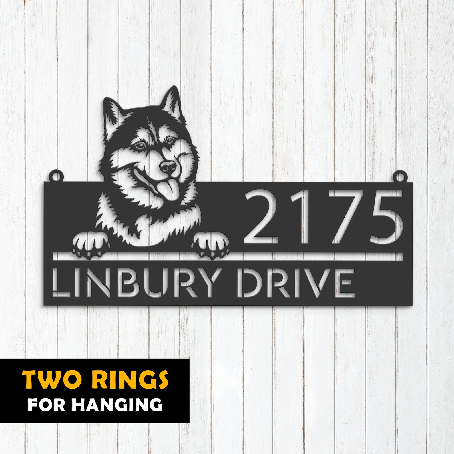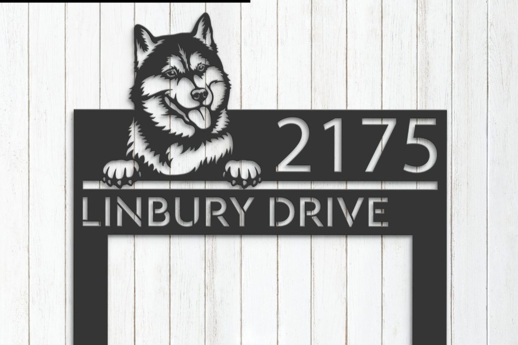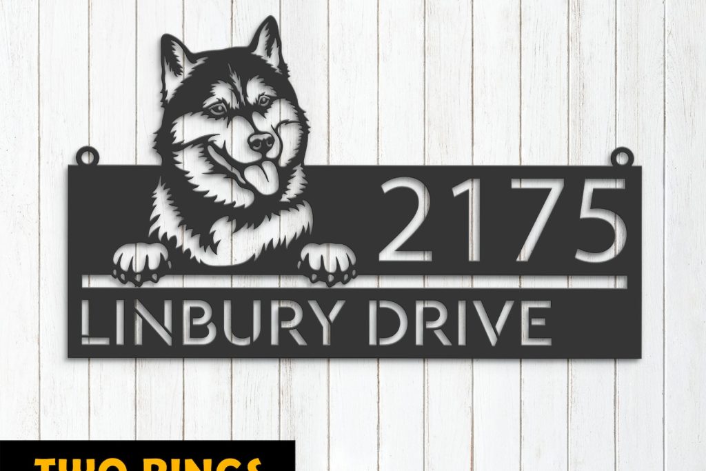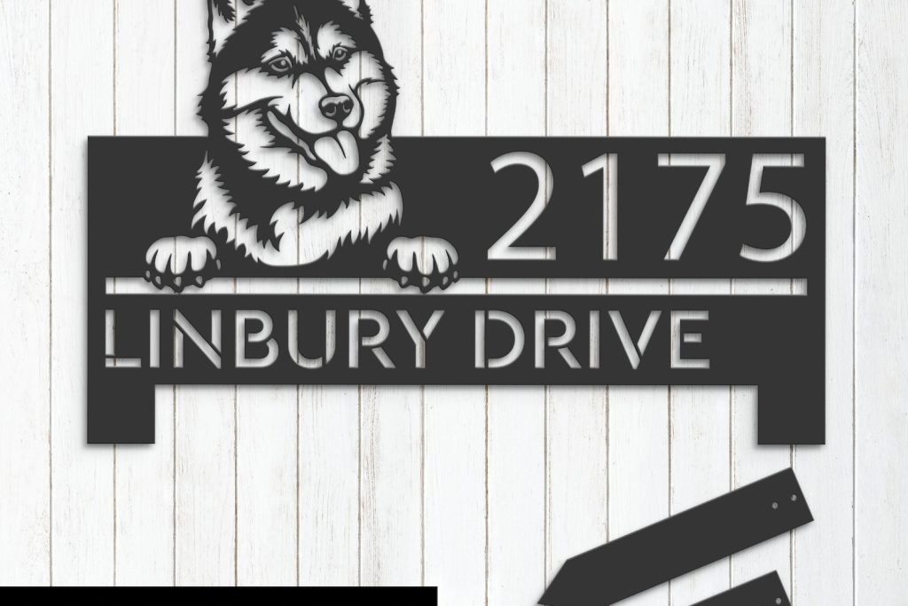 Personalized Siberian Husky Metal Address Sign – Puppy Yard Plaque