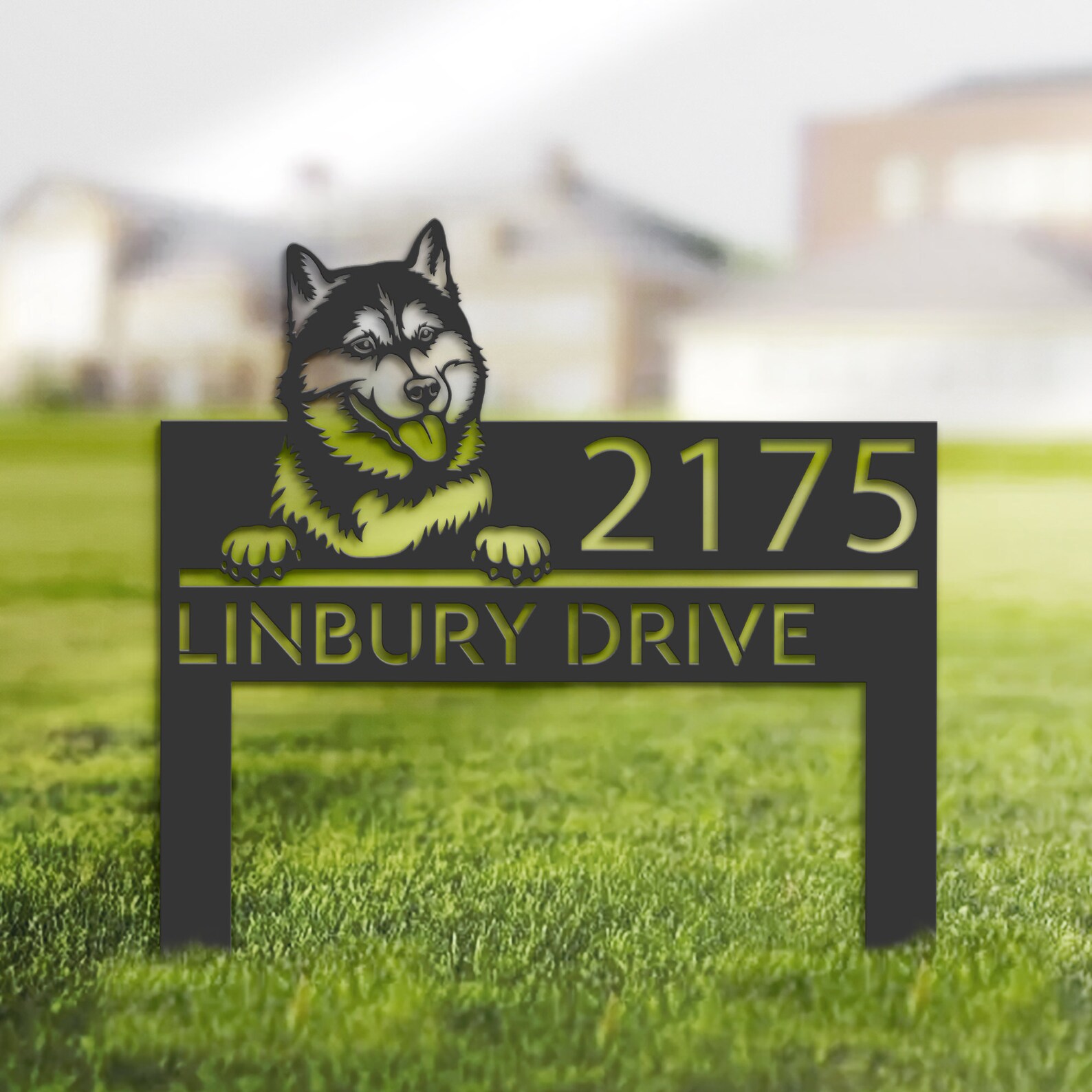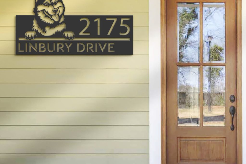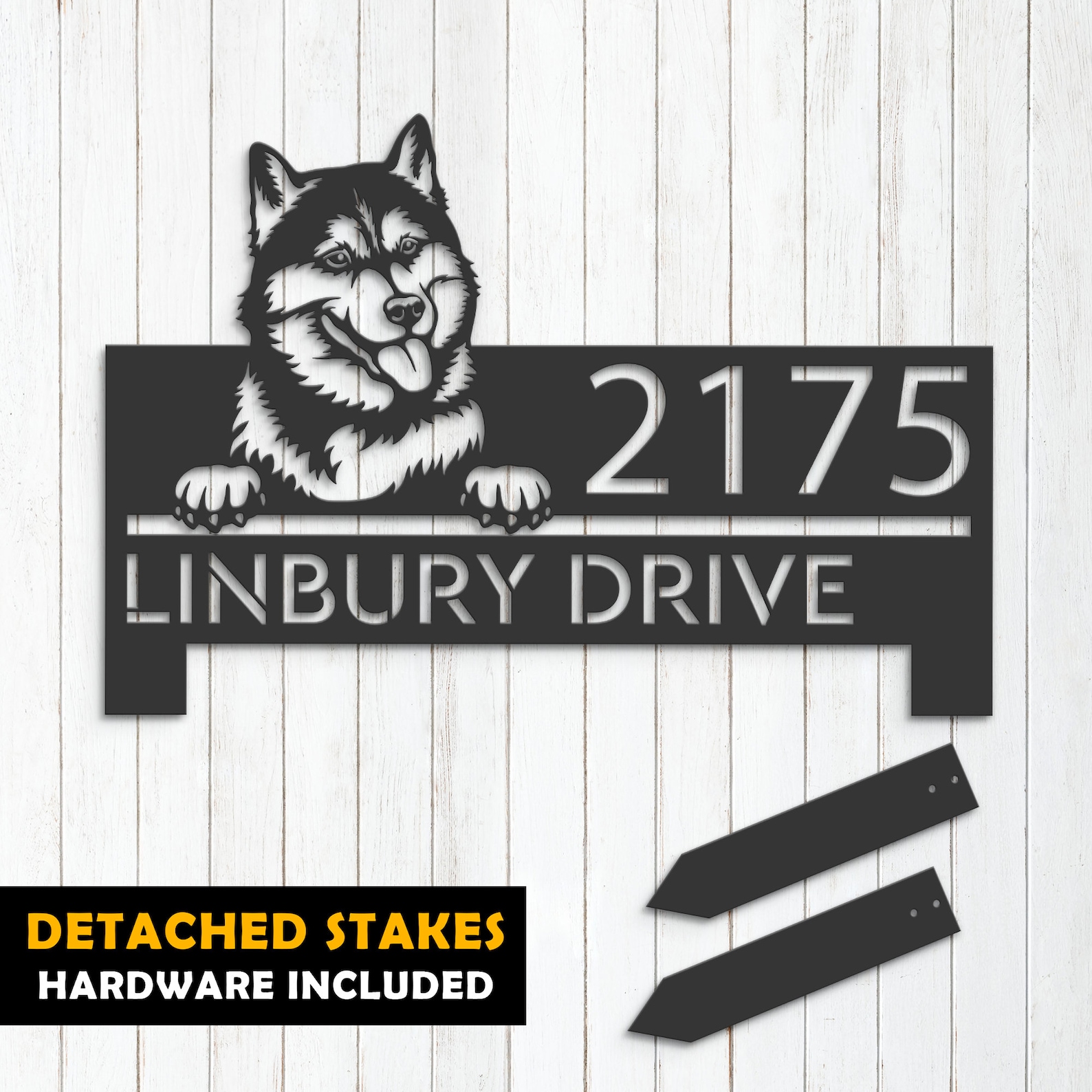 Personalized Siberian Husky Metal Address Sign – Puppy Yard Plaque