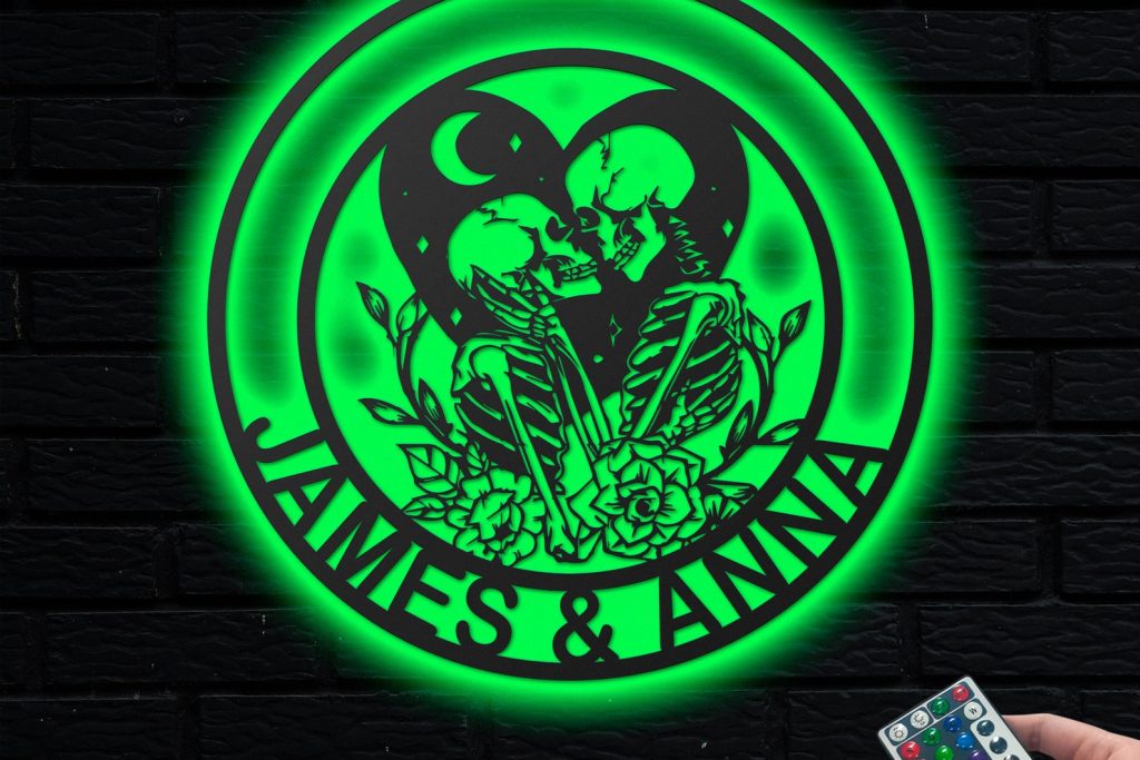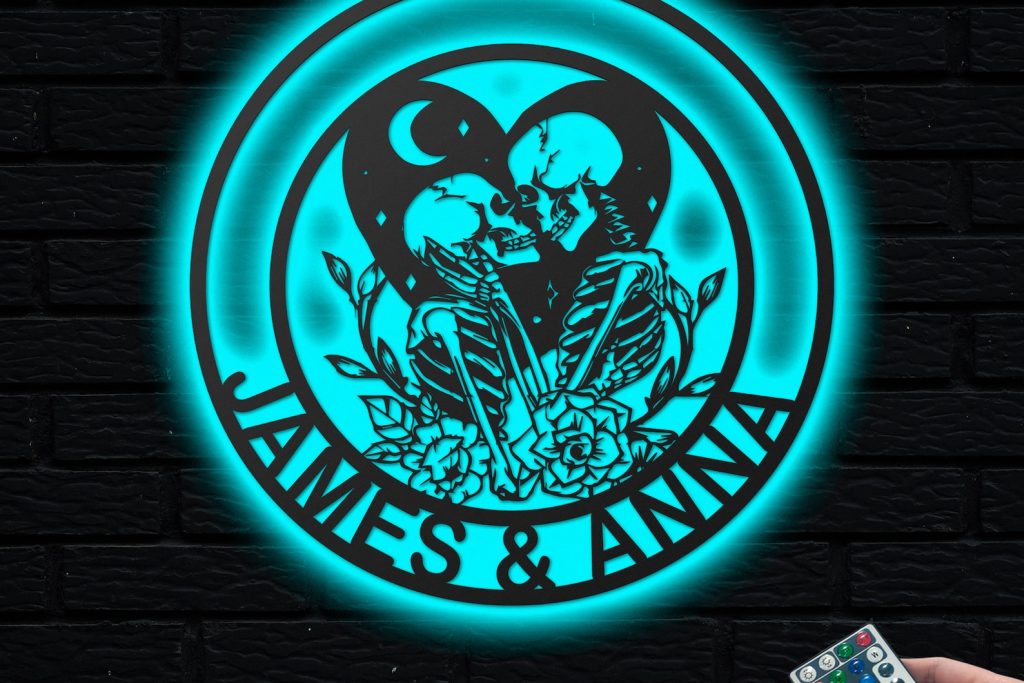 Be the first to review “Personalized Skeleton Couple Metal Art with LED Light”