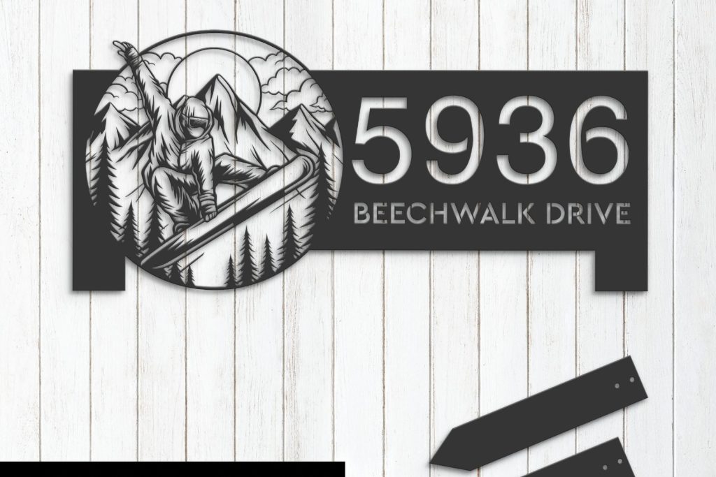 Be the first to review “Personalized Snowboarder Metal Address Sign”