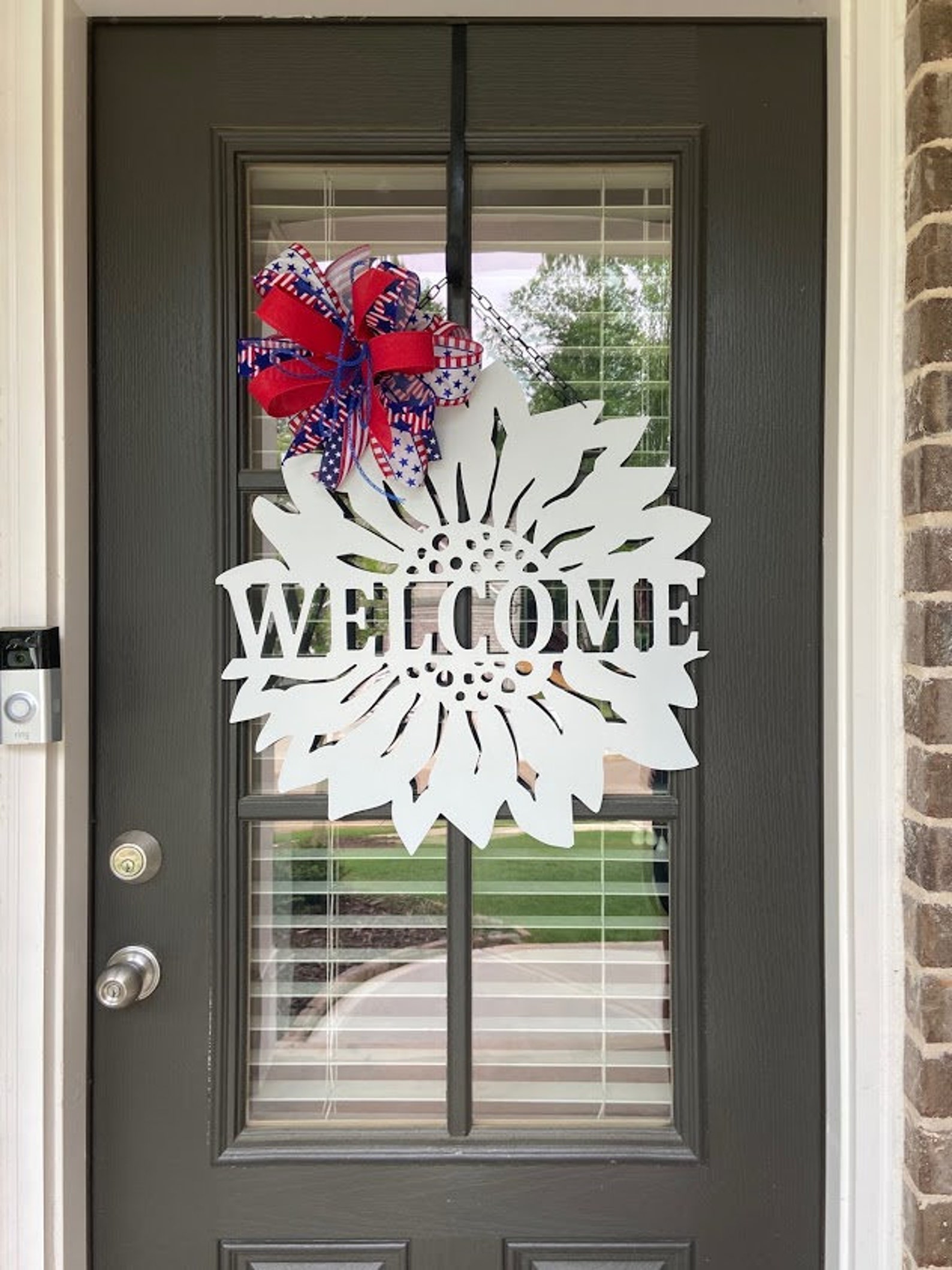 18 INCH DECOR – Perfect size for front doors of townhomes, condos and apartments – empty space beside your front door – patios – eaves – pool areas – barns/workshops – gates and attaching to the front of wreaths. Great gifts for new couples – first homes together – engagements – birthdays – special occasions – and just because.