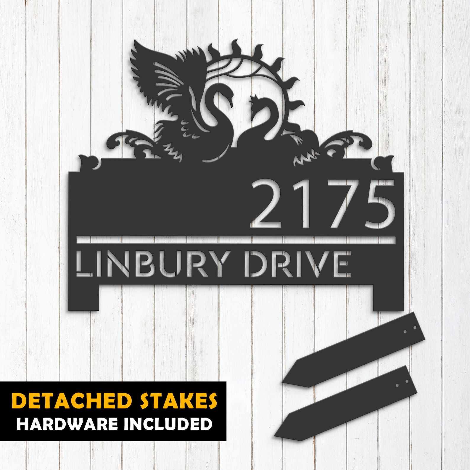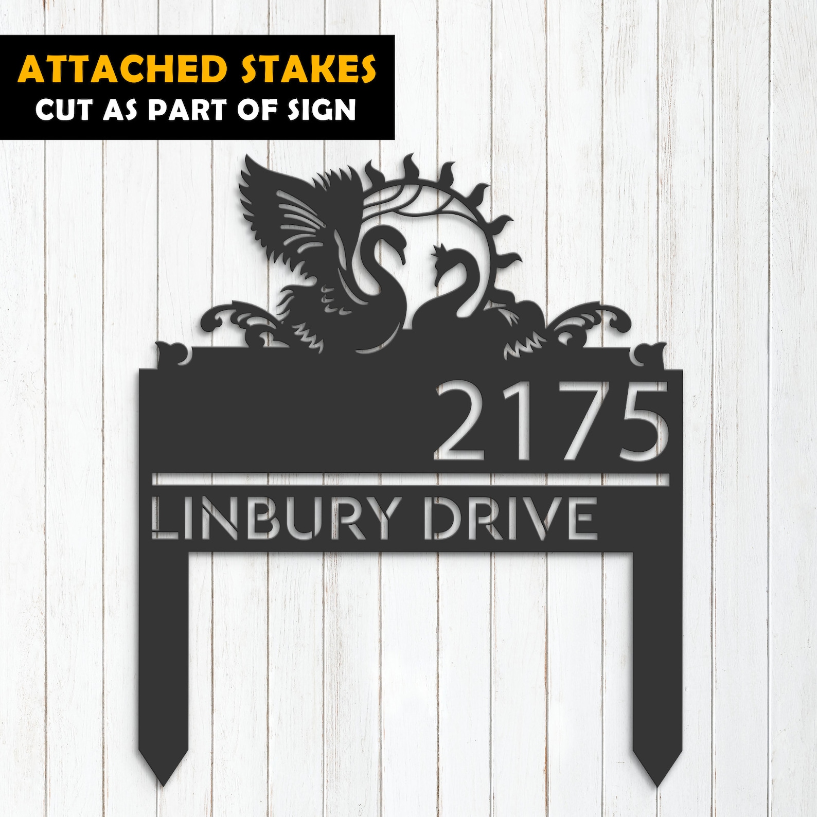 Be the first to review “Personalized Swan Couple Metal Address Sign with Yard Stake”