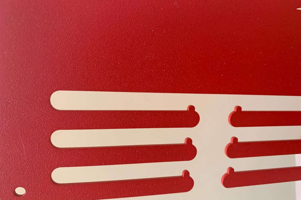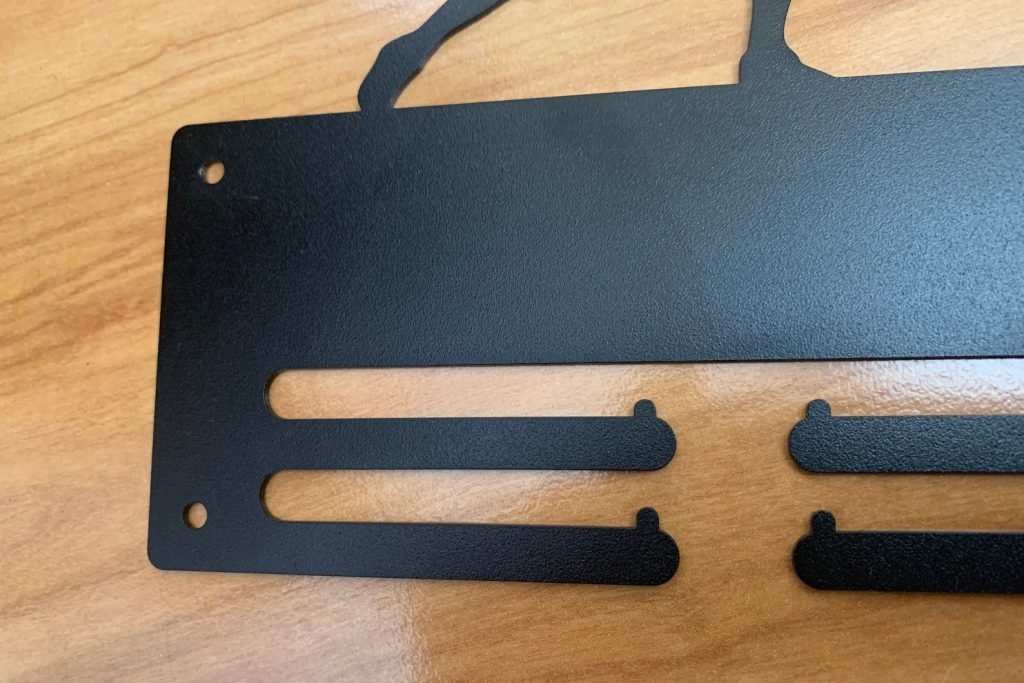 Medals can be hung from the bars below the name.