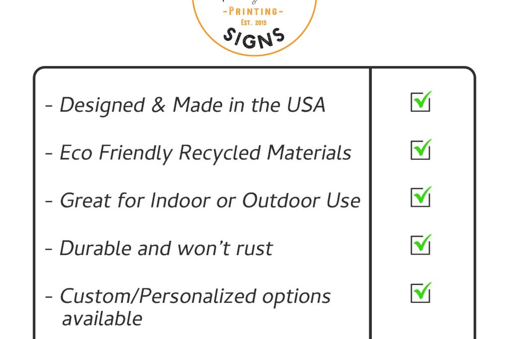 -PREMIUM options are crafted from 100% recycled Aluminum Composite panels that are .125" thick. Aluminum composite panel is comprised of a reinforced synthetic core sandwiched between two sheets of aluminum. The benefits of this material is that it9;s more rigid yet lightweight making it easy to hang and it9;s 100% recycled.