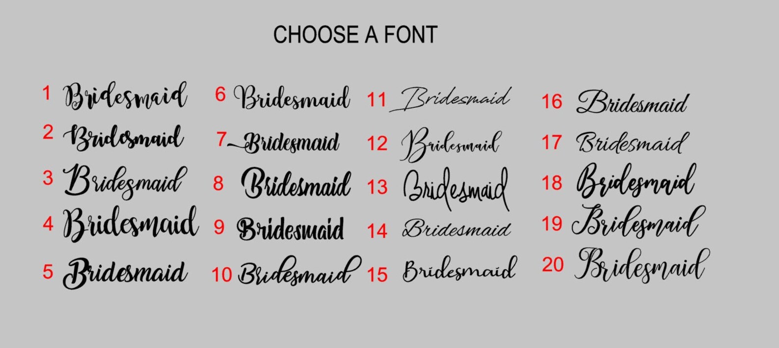 We have multiple sizes available. To see our current sizes available, click the drop down menu for each style.