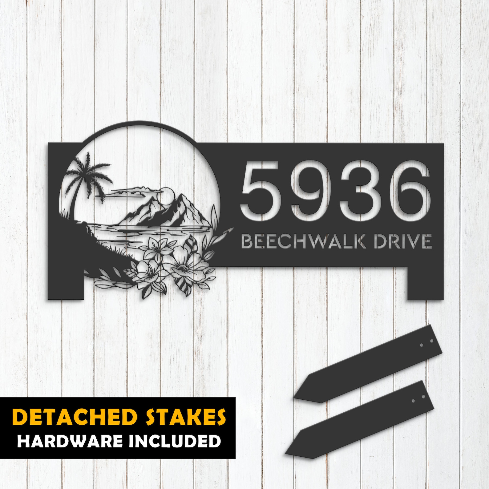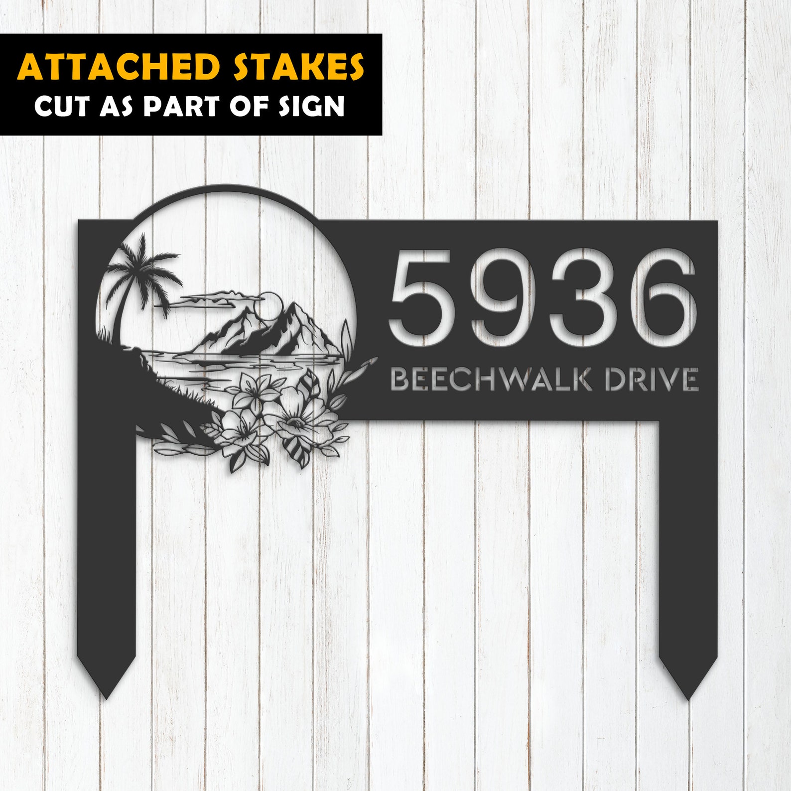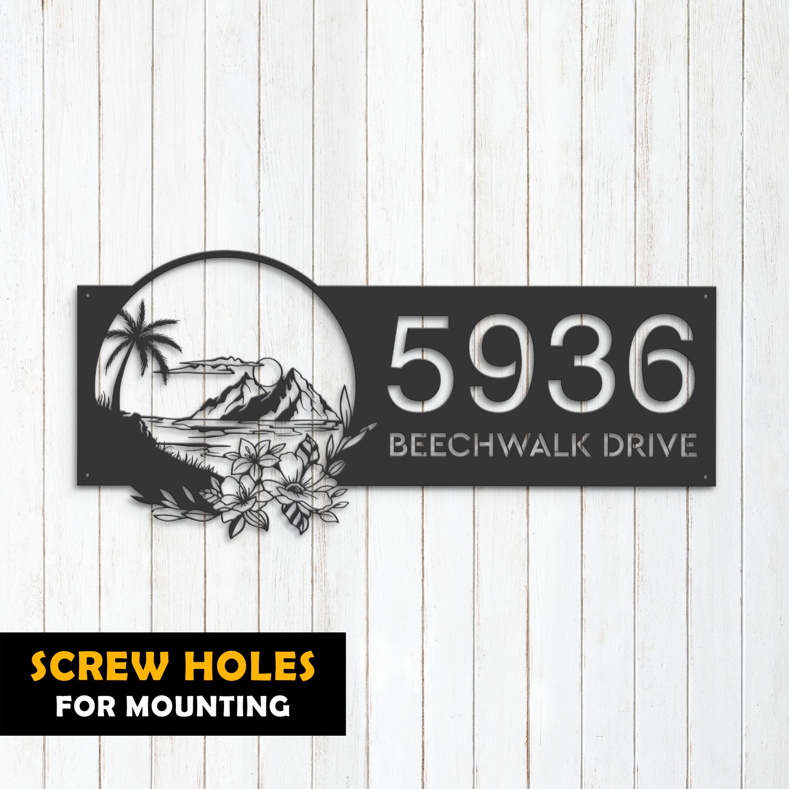 Introducing our custom metal address sign, available in 5 size options and 4 different styles to suit your individual needs. With our address sign, you can make a statement while also ensuring that visitors can easily locate your home or business.