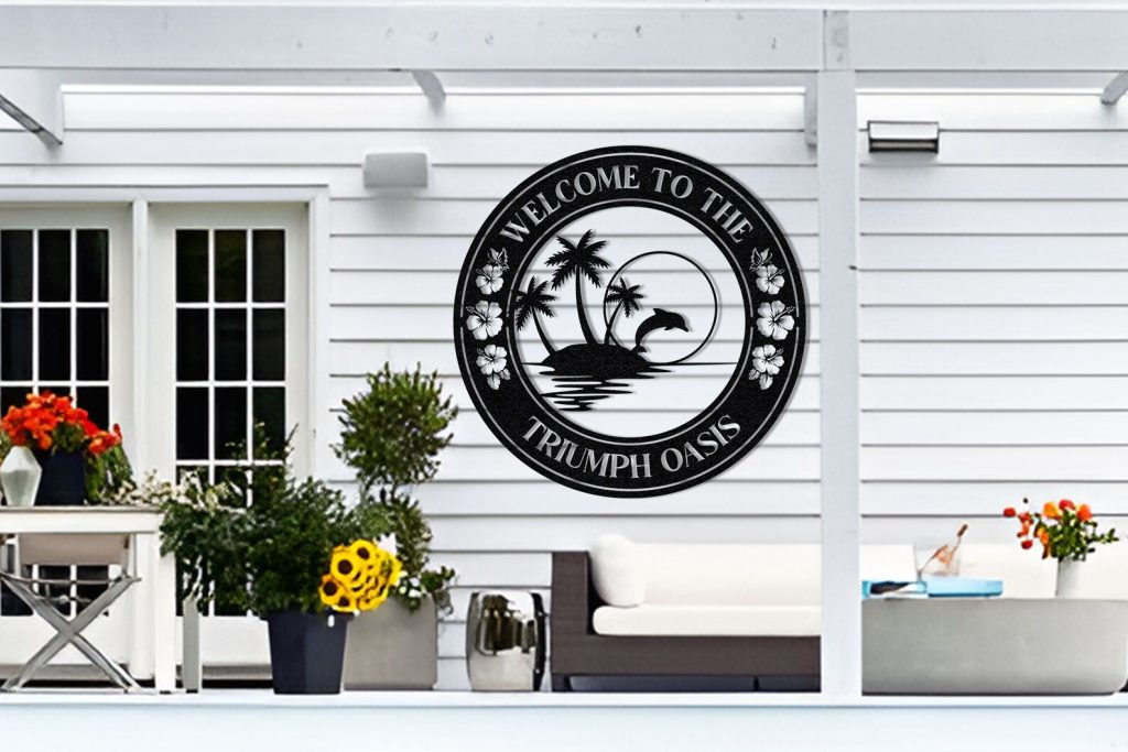 Personalised Tropical Patio Metal Sign, Custom Backyard Pool Sign, Family Welcome Sign, Palm Tree Decor, Outdoor Patio Sign, Oasis Sign