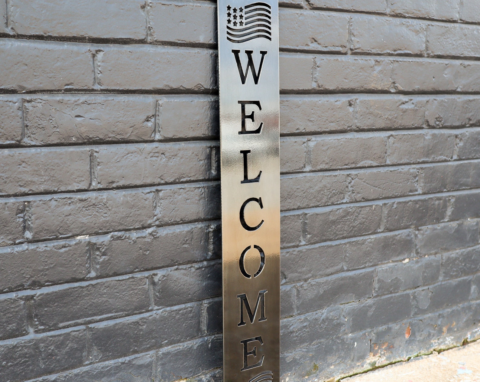 Sign measures 8. Made of Aluminum with rounded corners and can be used inside or out. Two pre-drilled holes for easy hanging.