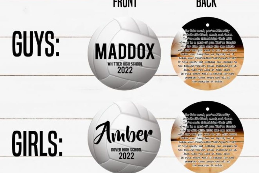 Use this personalized metal tag for a special gift for your volleyball player. Makes a great sentimental gift for senior volleyball players and it9;s perfect for Senior Night or sports banquets at your school.